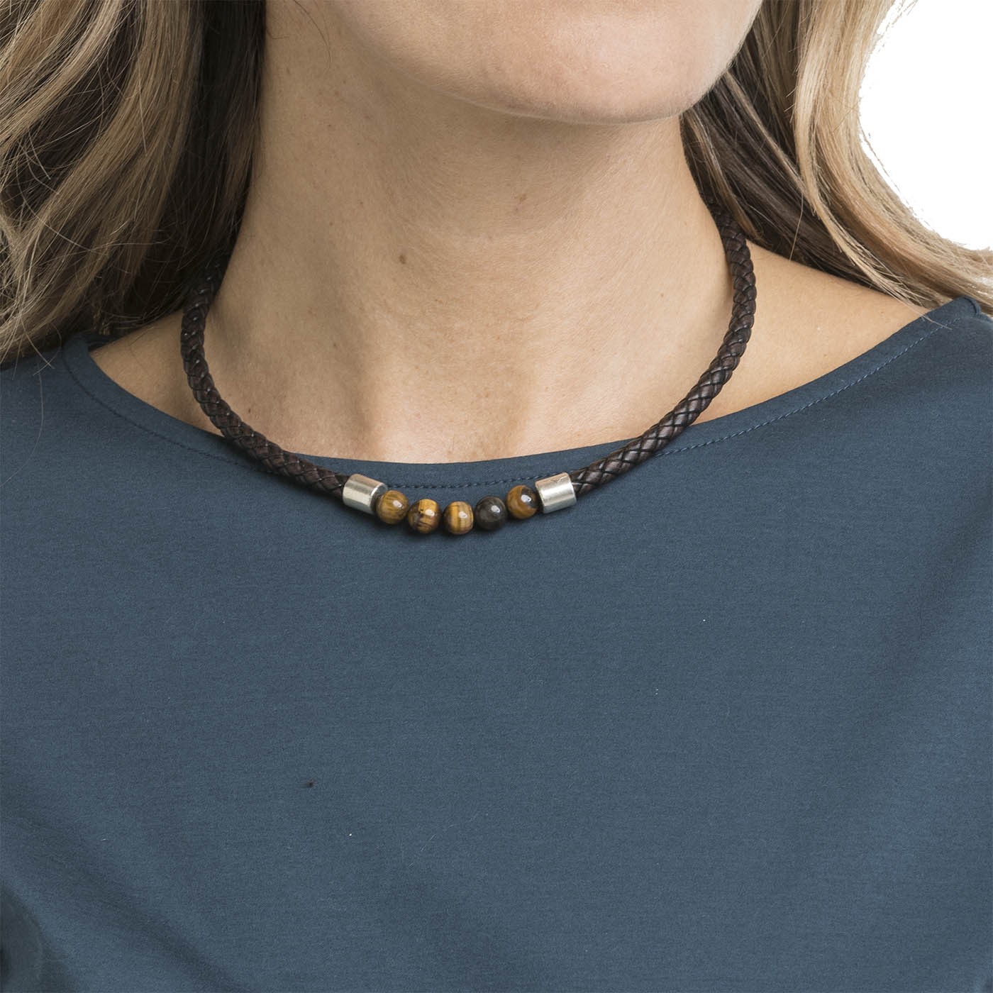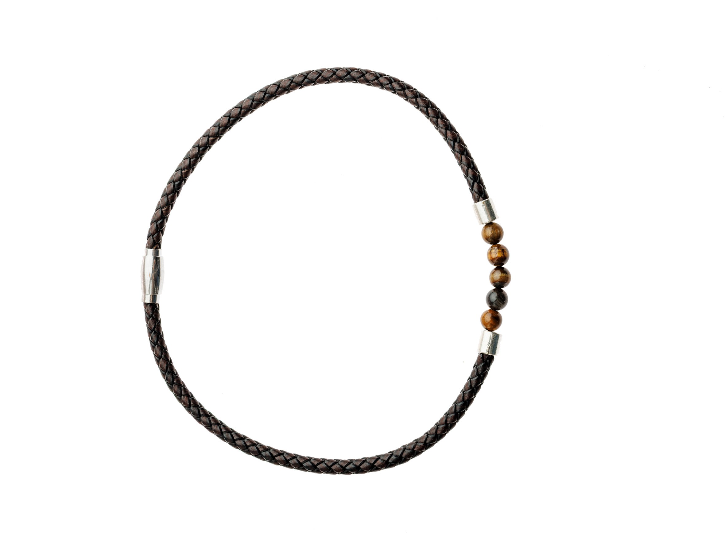 ULMI reprezintă sălbăticia ta personală într-un ambalaj minimalist. Brățara este alcătuită dintr-o curea din piele împletită (pe care o înfășori de două ori în jurul mâinii), este împodobită cu cinci mărgele din piatră naturală, separate prin mici „separatoare” din aliaj. Acestea conferă brățării un plus de farmec, ținând în același timp totul la locul său. Același aliaj este folosit și la încuietoare, care este ușor de fixat și poate rezista chiar și in cele mai dificile condiții.