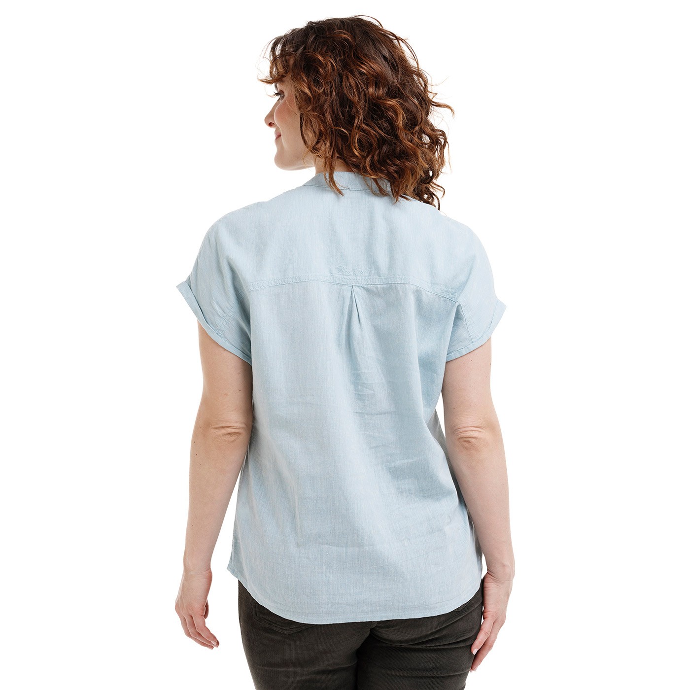 Cămașa pentru femei BARRA iese decent în evidență prin mânecile sale căzute, designul simplu și efectul melange. Dispunând de o broderie BUSHMAN mică pe partea din spate, confectionata din 55% in și 45% bumbac, această frumusețe este ideală pentru verile înăbușitoare. 130 g/m2, dedurizată prin spălare.
