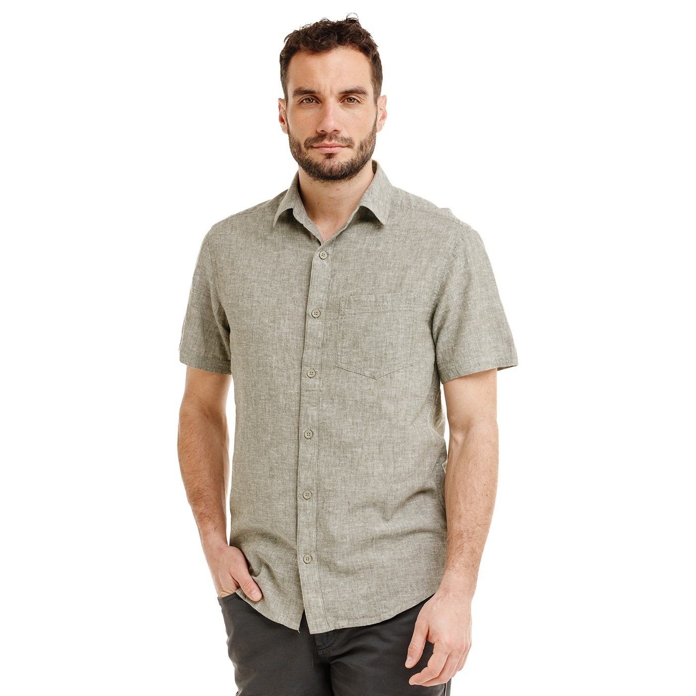 KWAME este o cămașă de vară pentru zilele în care îți dorești material cât mai ușor și confort maxim. Combinația de bumbac și in creează o țesătură aerisită, care respiră bine, se usucă rapid și oferă un aspect natural, relaxat. Designul este evidențiat de un efect melanj fin. Abordarea minimalistă pune în valoare materialul și croiala, iar labelul metalic de design de pe spatele gulerului adaugă un detaliu subtil, dar distinctiv. Cămașa KWAME funcționează excelent purtată singură sau ca parte a unei ținute de vară pentru oraș, călătorii sau lângă apă.