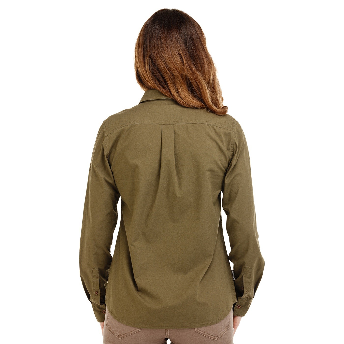 NUNNA este o cămașă expedițională de damă care combină croiala clasică cu detalii practice pentru purtare zilnică și activități outdoor. Bumbacul ușor este confortabil și respirabil, mânecile lungi pot fi rulate și fixate, oferind versatilitate. Pliul de pe spate asigură libertate de mișcare, iar buzunarele, nasturii decorați și broderia discretă adaugă caracter și un aer autentic Bushman.