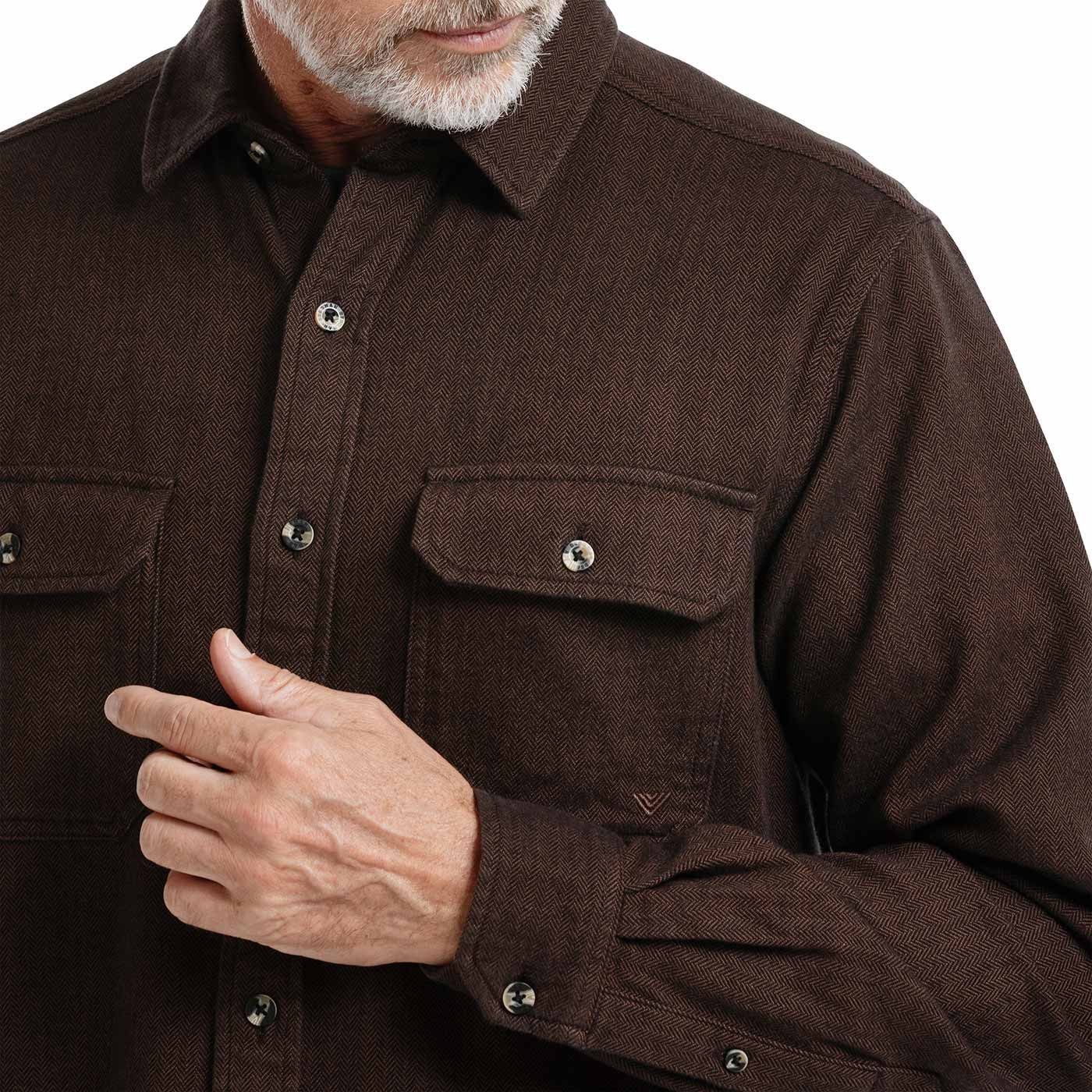 Modelul herringbone este atât de specific încât cămașa YURA nu necesită accesorii sau aplicații suplimentare. Are o croială clasică, este confecționată din bumbac 100% și se potrivește oricărui tip de silueta.