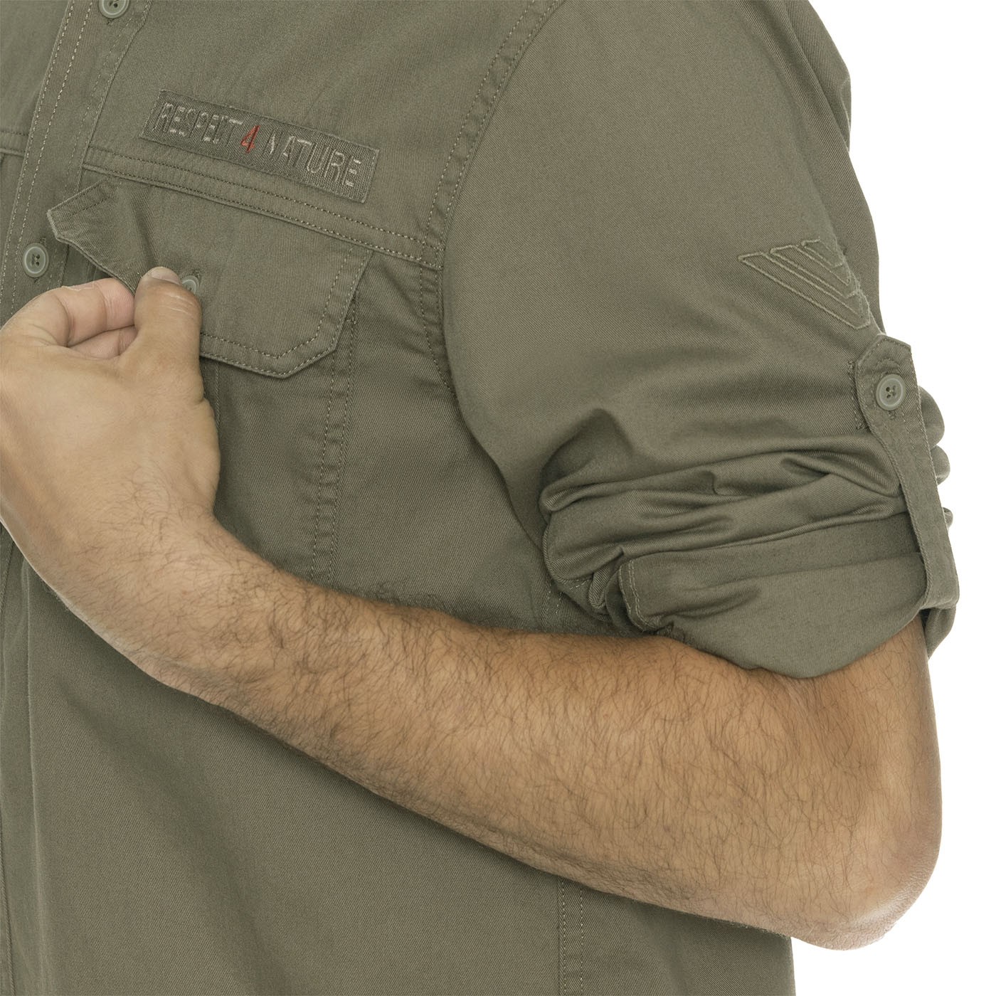 Cămașa clasică ZIKMUND, în stil "Expedition", are mâneci lungi, este spălată enzimatic și poartă legendara inscripție "RESPECT 4 NATURE" deasupra buzunarului stâng de la piept. Cămașa este confecționată din bumbac 100% dintr-o țesătură de tip twill și cântărește 170 g/m2. Este ușoară și confortabilă, având mânecile suflecate și o broderie cu sigla mărcii noastre pe o mânecă. Fie că faceți expediții, drumeții sau pur și simplu petreceți timp în grădină, vă veți simți minunat în această cămașă!