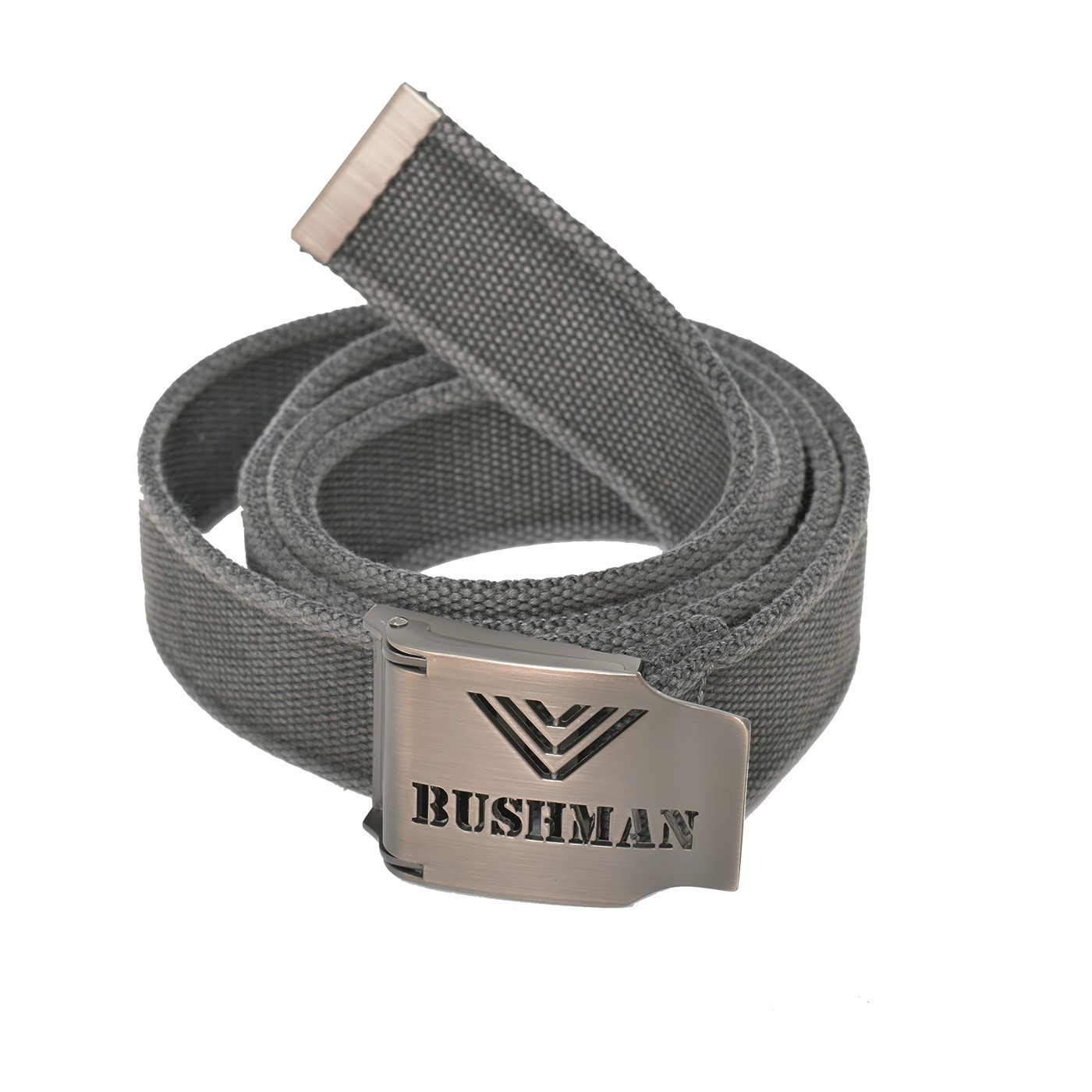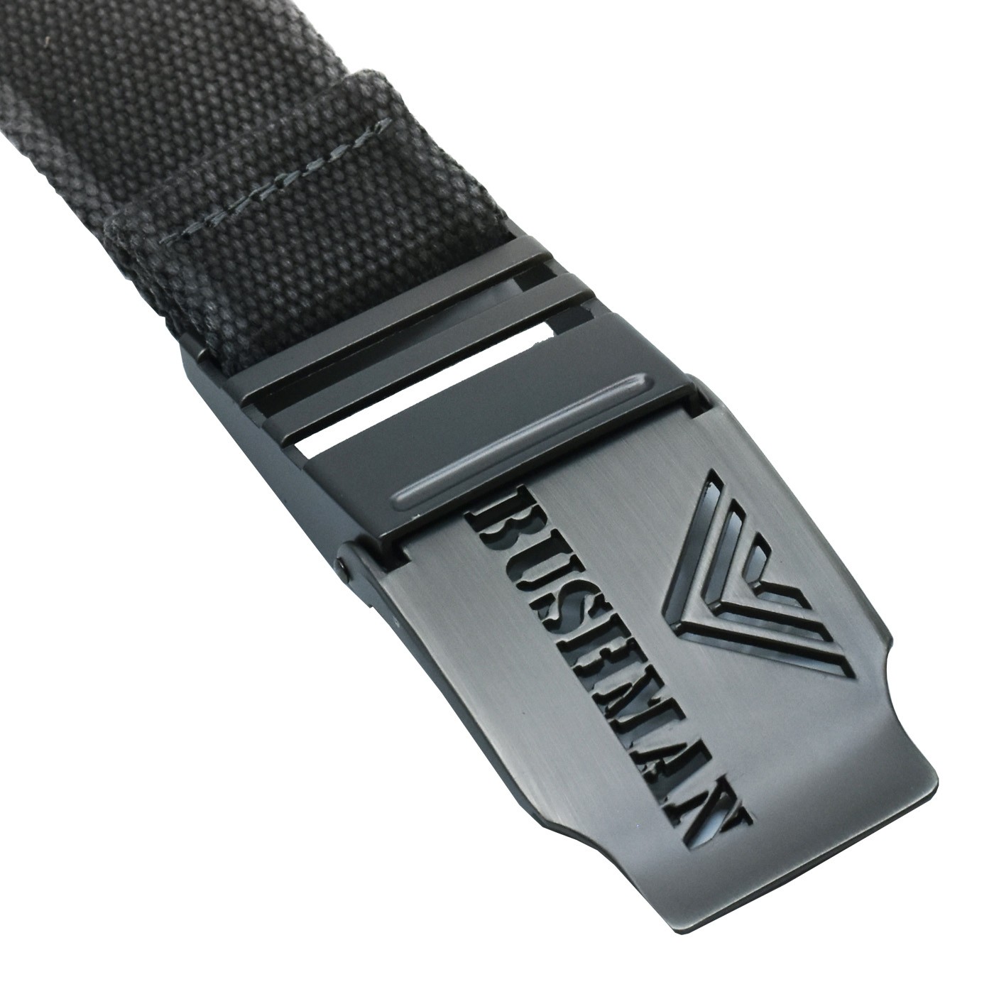 O cataramă masivă si un logo BUSHMAN decupat, pânză robustă din bumbac - te poți baza pur și simplu pe cureaua BUSHMAN FRAZING.