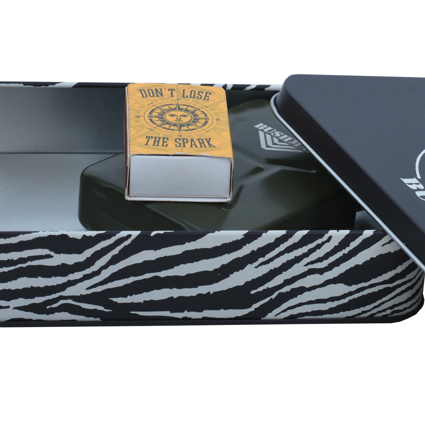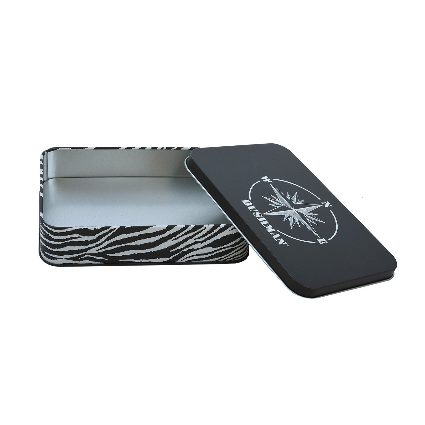 Cutia noastră metalică OBLONG are un aspect cu adevărat luxos datorită modelului „Bushman all-over print”. O puteți folosi pentru *) tot ce aveți nevoie - vă puteți depozita portofelul în ea, o puteți folosi ca și o cutie de depozitare în atelier sau acasă, sau chiar ascunde toate acele chitanțe enervante ... ;-) Acest mic gadget la îndemână este o adevărată încântare! Dimensiuni: 16 x 11 x 3,5 cm.