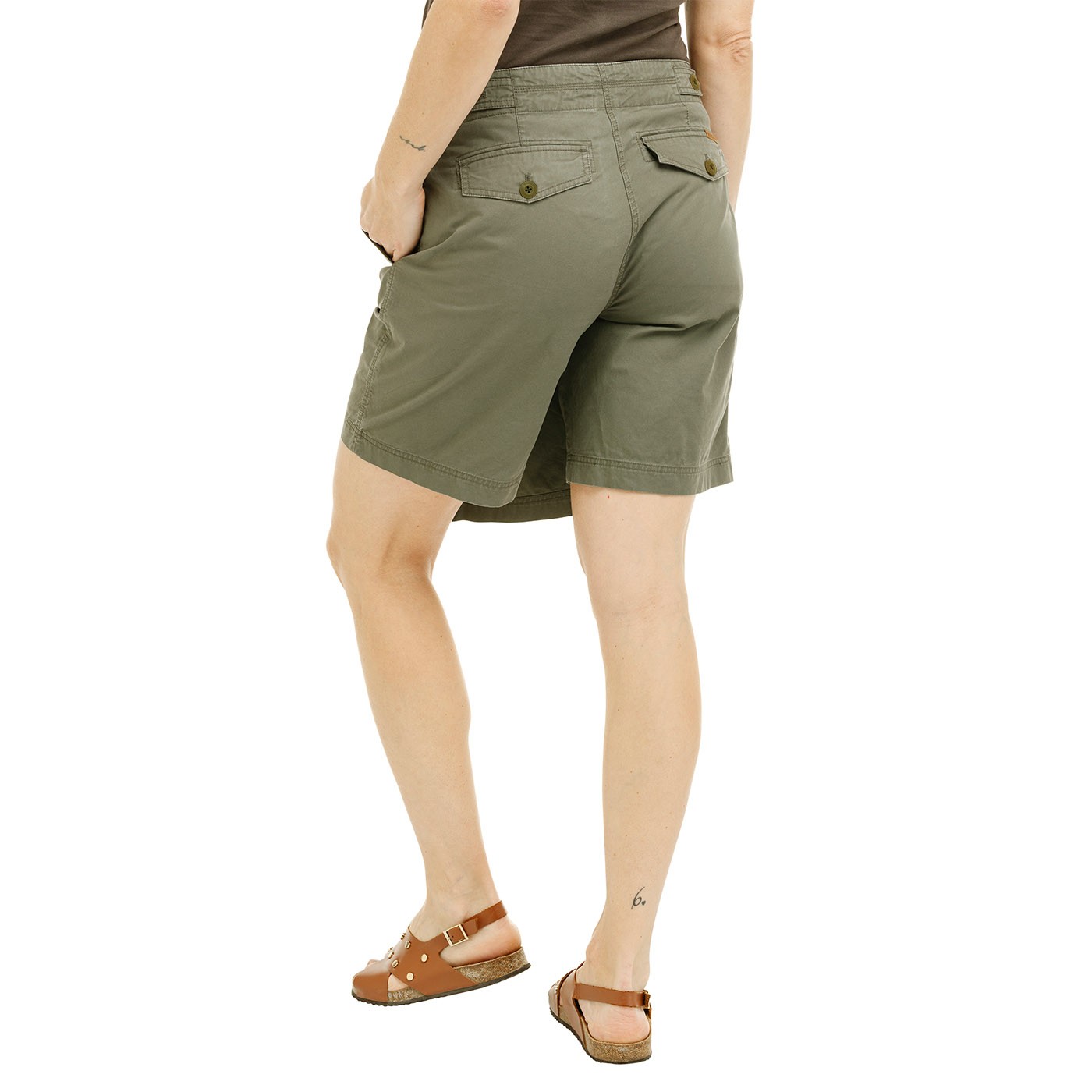 Fustă-pantalon de damă care combină confortul șorturilor cu aspectul elegant al unei fuste. Bumbacul în țesătură diagonală asigură rezistență și un efect plăcut de fluiditate. Reglarea taliei cu nasturi de brand pe laterale permite ajustarea mărimii. Buzunarele laterale practice și cele două buzunare din spate cu clapă și nasture sunt completate de o etichetă din piele ecologică pe buzunarul din spate drept. Broderia discretă de brand deasupra buzunarului frontal stâng subliniază stilul mărcii.