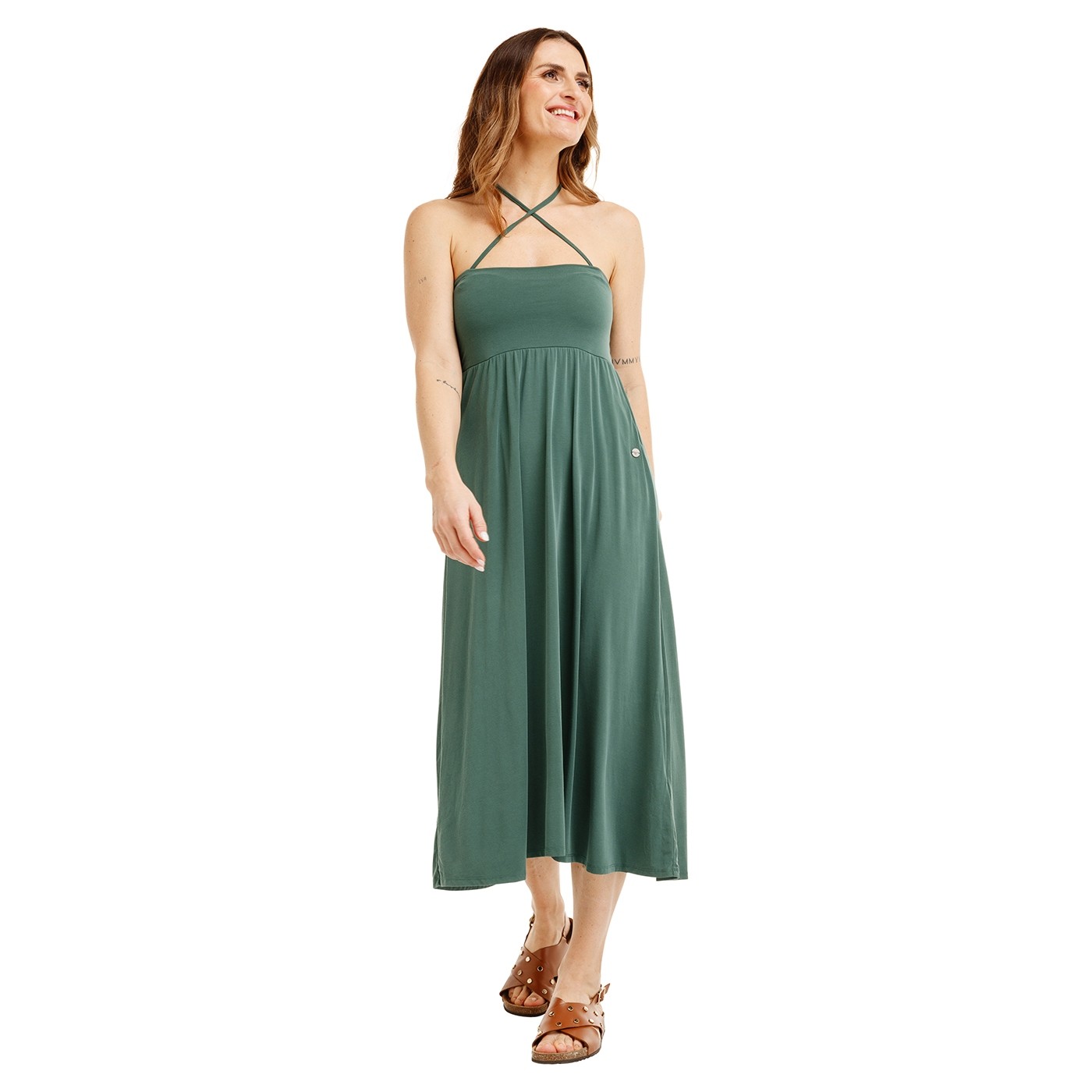 AWKA II este o piesă universală din garderoba feminină, care îmbină eleganța, lejeritatea și versatilitatea. Materialul este fin la atingere și cade frumos. Betelia lată poate fi răsucită și modelează delicat silueta. Fusta se poate transforma într-o rochie stilată, fiind astfel o piesă multifuncțională cu utilizări variate.