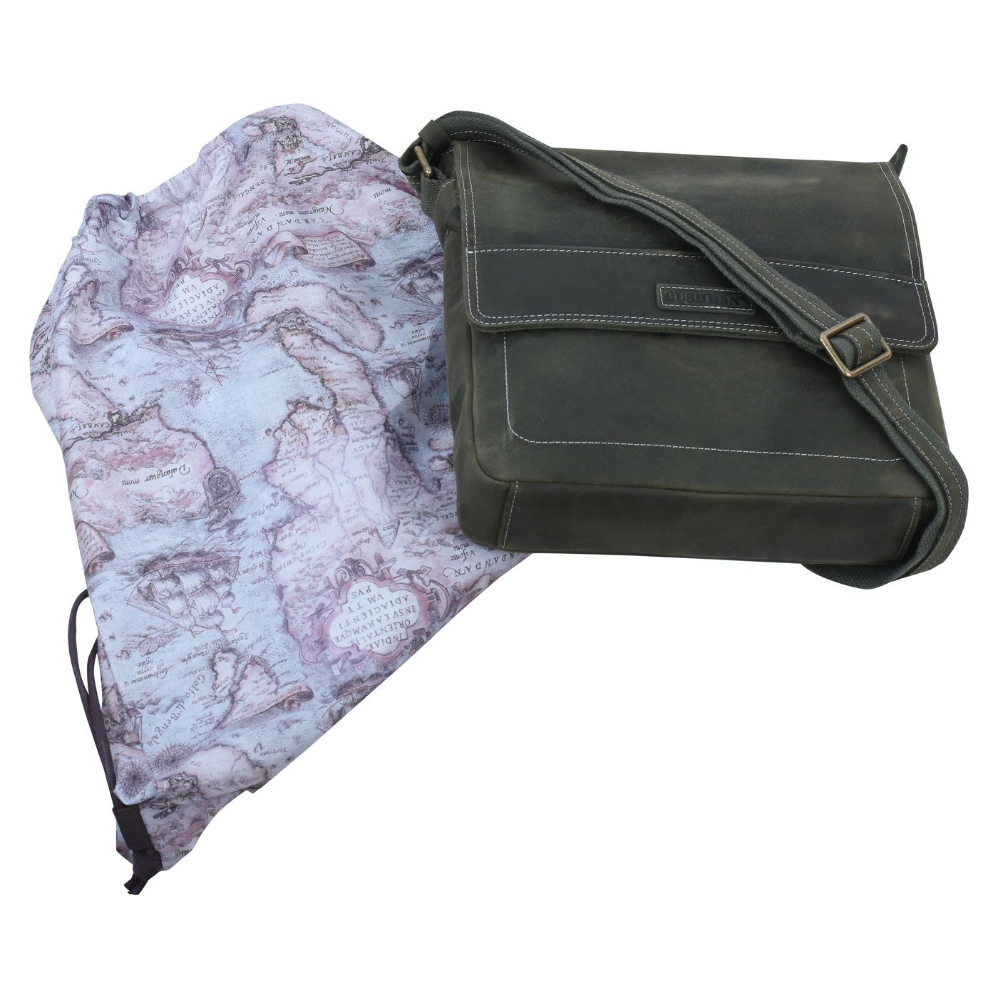 Această geantă se potrivește atât pe străzile orașului, cât și în peisajul natural - sau oare chiar face parte din ele? :) Confecționată din piele de vacă de calitate superioară, este decorată cu un logo BUSHMAN fin și cu cusături distinctive. Puneți cureaua din piele (combinată cu pânza de bumbac) pe umeri și scurtați-o sau prelungiți-o după cum doriți. Geanta DUERO este mare si oferă o mulțime de spațiu; un buzunar principal, un mic buzunar intern cu fermoar și un alt buzunar mai mic cu fermoar în partea din față. Căptușeala este confecționată din pânză de bumbac, decorată cu un motiv de hartă în formă completă. Aruncați în ea portofelul, agenda, o gustare, închideți-o pur și simplu cu cele două capse și sunteți pe drum! Pentru o depozitare comodă, geanta DUERO include și o pungă din pânză - în cazul în care doriți să o folosiți ca sac de pantofi sau pentru a depozita ierburi uscate ;).