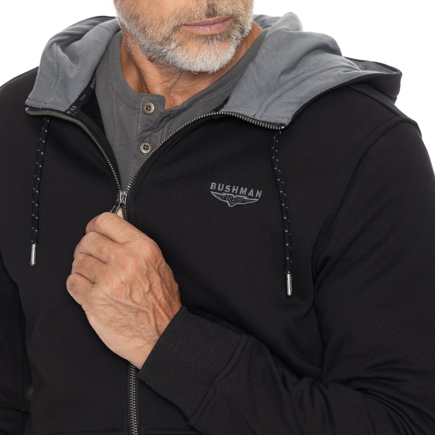 Puloverul cu glugă cu fermoar complet pare că a fost modelat pe tine - ți se potrivește perfect! Este confecționat din 85% bumbac și 15% poliester rezistent. Nu este deosebit de interesant doar datorită siglei BUSHMAN, dar bordura elastică de pe părțile laterale, din centrul glugii și din partea de jos a mânecilor îi conferă un plus de unicitate. Hanoracul cu glugă a fost dedurizat și spălat enzimatic, așa că va dura mai mult decât credeți! Greutate: 340 g/m2.