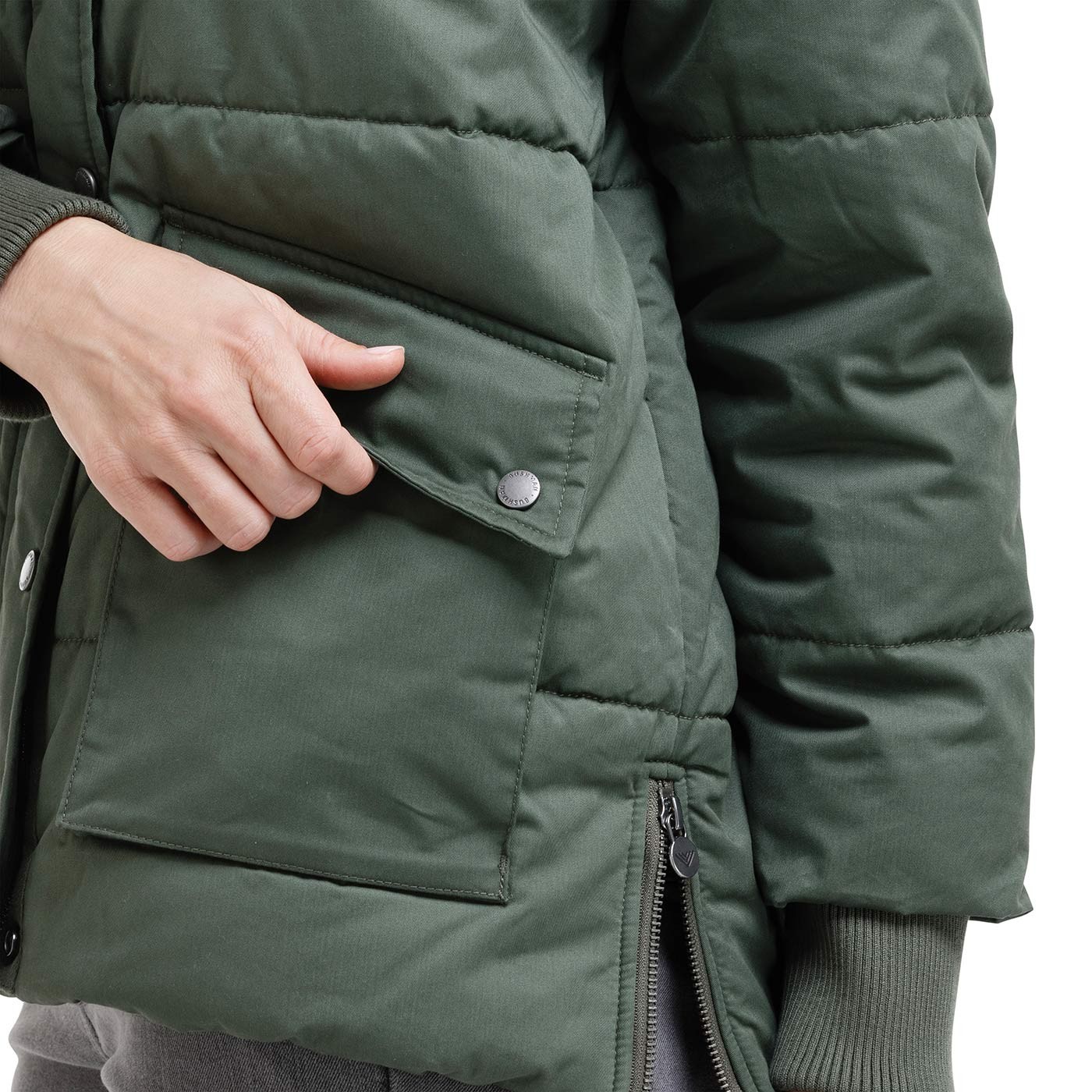 Această jachetă de iarnă durabilă și călduroasă cu glugă nu este doar practică, ci și atractivă, datorită cusăturilor orizontale și broderiei subtile a mărcii pe buzunarele din față. Buzunarele din față sunt adânci, oferind spațiu suficient pentru telefonul mobil, portofel și mâinile înghețate. Partea de la încheietura mâinii este tivită. Gluga oferă catifelare și căldură datorita căptușelii interioare din „blană artificială” de culoare deschisă. Croiala clasică, dreaptă avantajează toate formele corpului. Compoziție: 70% bumbac, 30% poliester. Greutate: 154 g/m2, fermoare YKK.