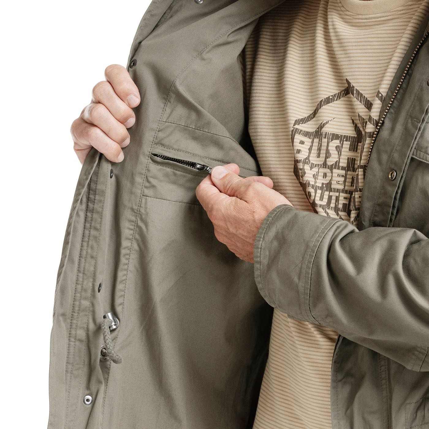 Această splendoare de jacheta nu vă va dezamăgi! Jacheta noastră de expediție BOW cu elemente în stil militar este multifuncțională din toate punctele de vedere. Este căptușită, are o mulțime de buzunare, cordon de strângere în talie și la tiv și o glugă cu fermoar care este ascunsă în guler. Jacheta este fabricată din bumbac 100% și este spălată cu enzime pentru un plus de durabilitate. Pe piept are inscripția noastră tradițională de expediție "RESPECT4NATURE". Greutate: 200-210 g/m2.