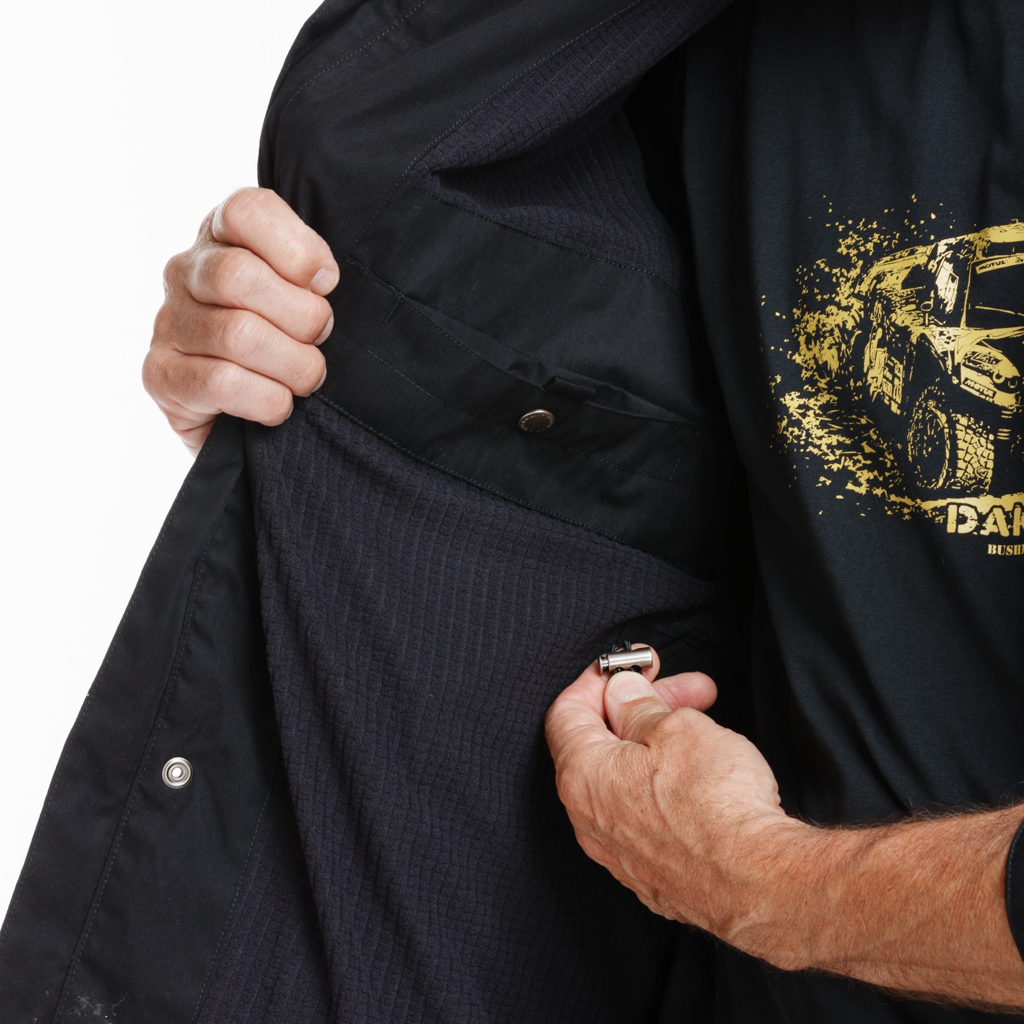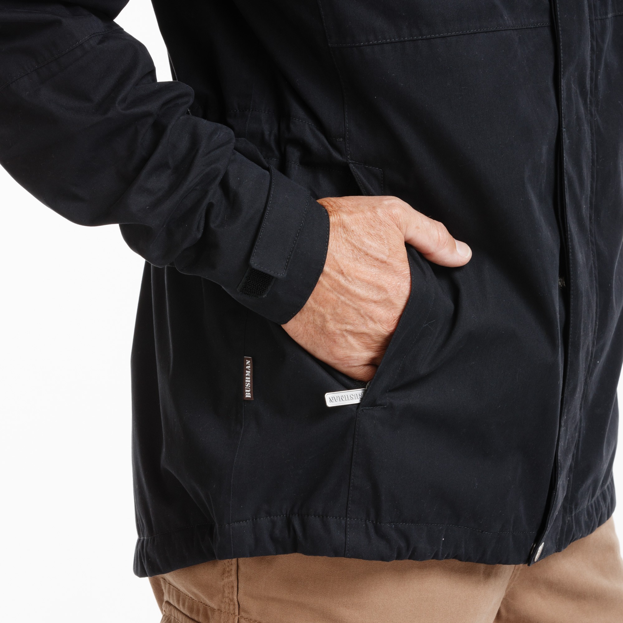Această jachetă impermeabilă (70% bumbac, 30% nailon) este foarte respirabilă și funcțională. Are o croială sportivă, o căptușeală ușoară și o închidere cu fermoar și capse, cusături cu bandă aderentă, o glugă practică cu vizieră mulată și partea din spate ușor alungită. Țesătura superioară din țesătură twill are o membrană cu fibre ușoare periate și laminate. Gluga este reglabilă cu ajutorul unor cordoane de tragere duble și există, de asemenea, un cordon de strângere suplimentar la talie și la tivul inferior. Lărgimea inferioară a mânecilor poate fi, de asemenea, ușor ajustată cu Velcro. Jacheta este căptușită cu o țesătură pufoasă și moale, cu o textură în carouri, pentru o mai bună respirabilitate. Are mai multe buzunare: 3 buzunare externe, dintre care unul are fermoar pe mânecă, și două buzunare interne. Mâneca prezintă o broderie de brand și este, desigur, echipată cu fermoare YKK. Greutate: 165 g/m2.