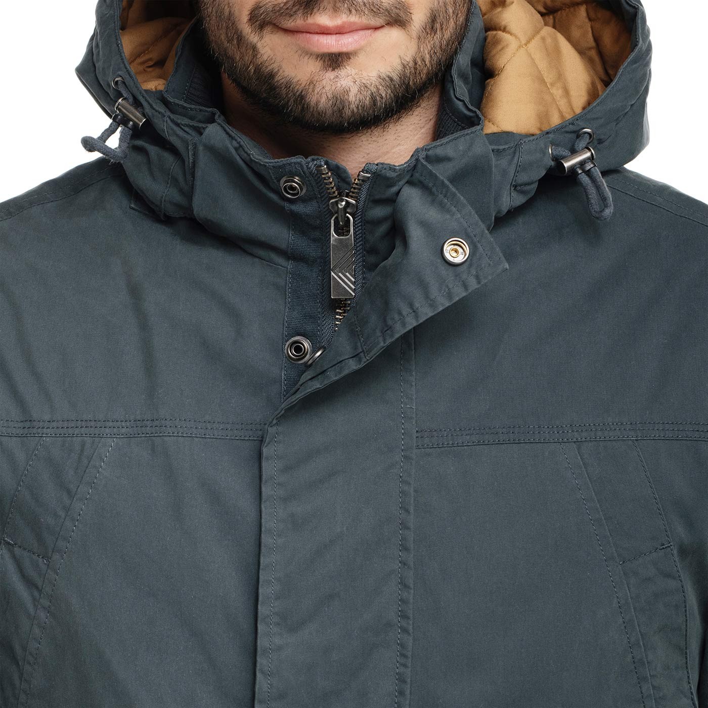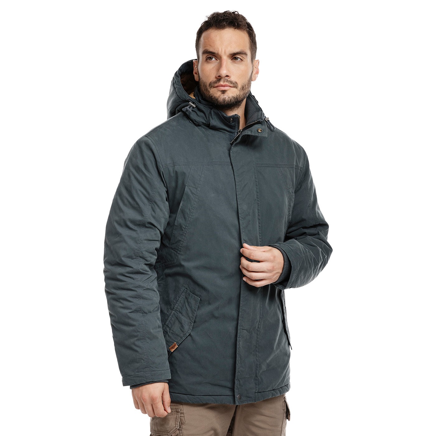 Această jachetă de iarnă termoizolantă este confecționată cu o mulțime de buzunare și un strat la spate care sporește greutatea și durabilitatea materialului. Are o glugă detașabilă, buzunare laterale și pe piept cu nasturi, două buzunare interioare și o talie cu cordon. Jacheta este confecționată dintr-un amestec de țesături netede cu o suprafață ușor catifelată (60% bumbac, 40% nailon, greutate 170 g/m²). Spatele este dublat cu o căptușeală din bumbac ușor pufos pentru a permite pielii să respire liber, în timp ce restul jachetei este prevăzută cu o căptușeală 100% poliester cu țesătură uni. Jacheta este completată de ornamente pe mâneci și pe gulerul interior, broderie pe piept și o etichetă din piele pe clapeta buzunarului din dreapta și pe spate.