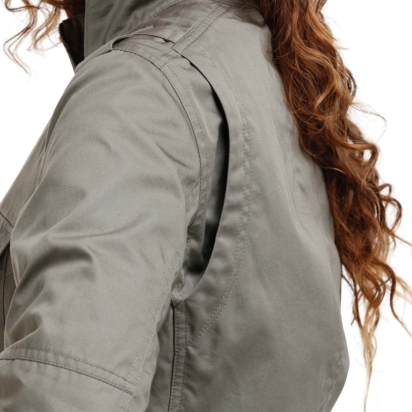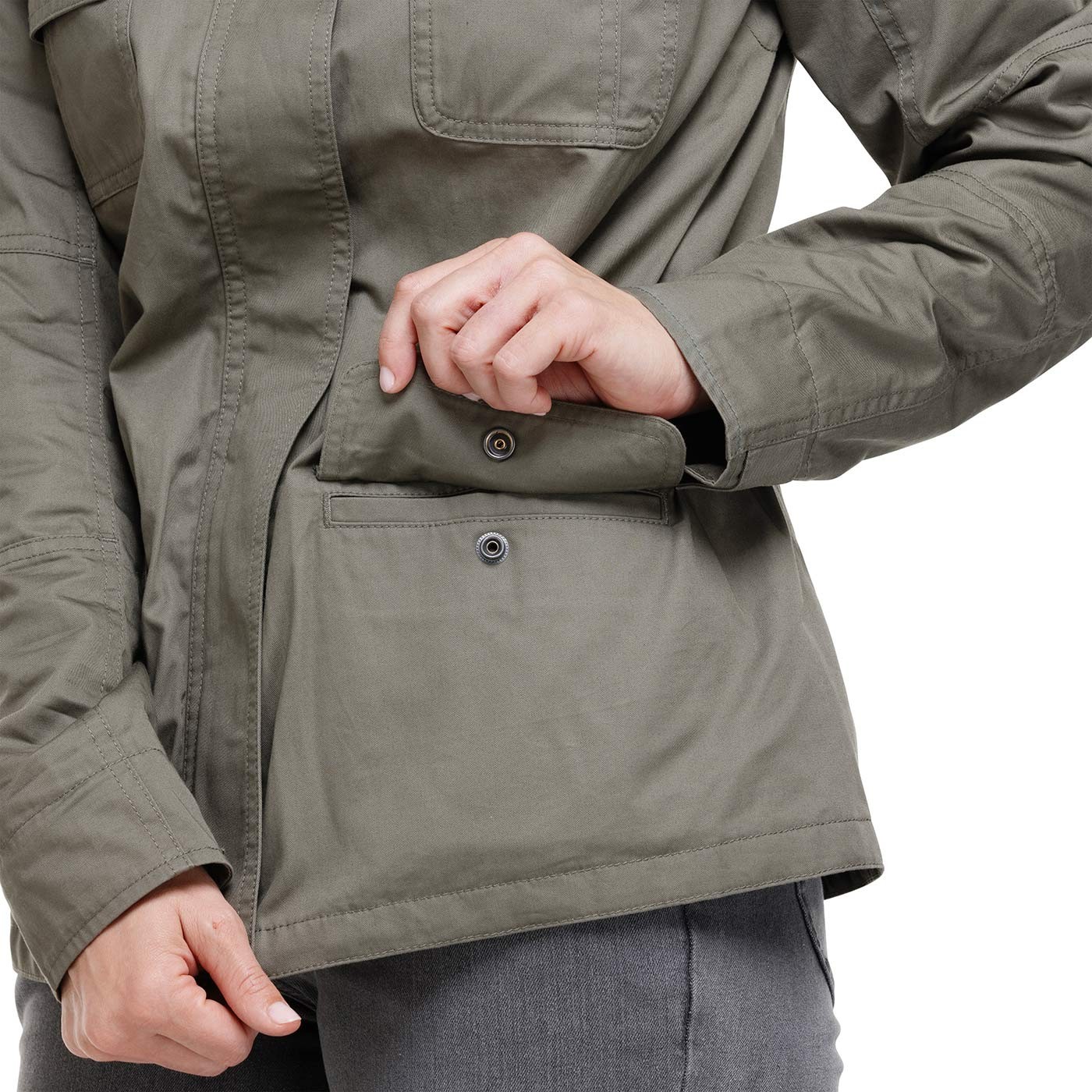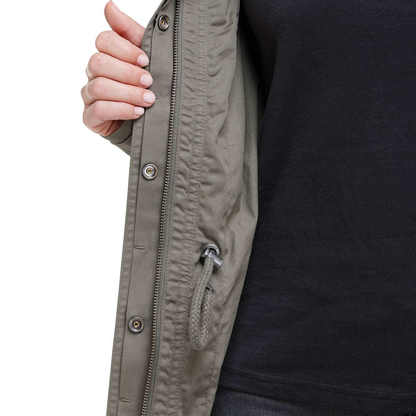 Jacheta noastră NORA, de tranziție, căptușită, pentru femei, iese în evidență cu stilul său militar. Fabricată din bumbac 100%, este decorată cu broderii delicate și cusături interesante la nivelul pieptului. Buzunarele sunt decorate cu capse metalice. Partea din spate a jachetei are un sliț practic cu fermoar, în timp ce umerii și manșetele sunt decorate cu patch-uri în stil militar și de aventură. Țesătură twill, greutate 210 g/m2.0 g/m2.