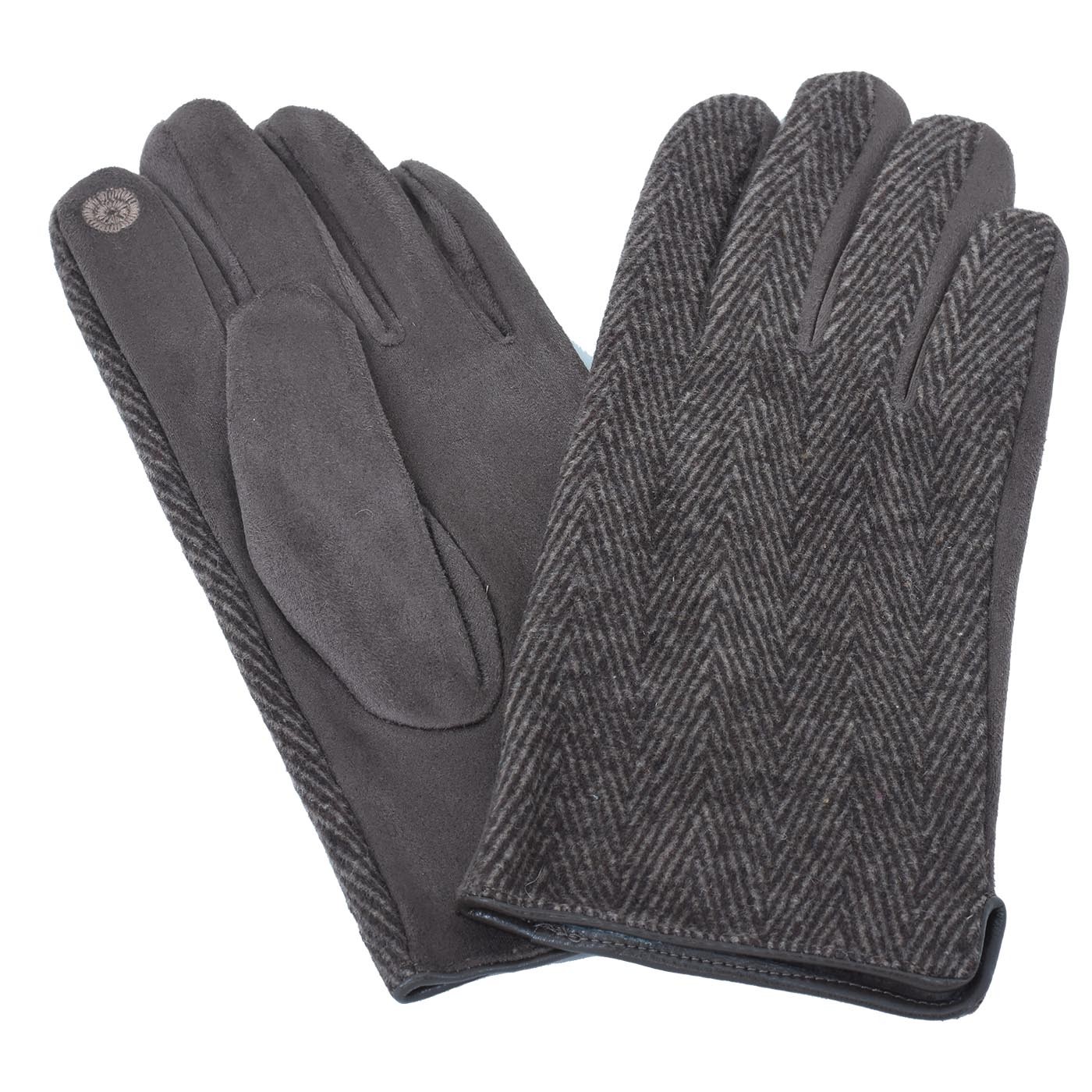 Partea din spate a mănușilor este decorată cu imitație de tweed cu un model clasic în spic de hering, ceea ce le conferă un stil atemporal. Există, de asemenea, un tiv inferior elegant din piele artificială și o fantă practică pe partile laterale. Bineînțeles, există puncte speciale de atingere pe degetele mari și arătătoare, mulțumită cărora vă puteți controla confortabil telefonul mobil fără a fi nevoie să vă scoateți mănușile.