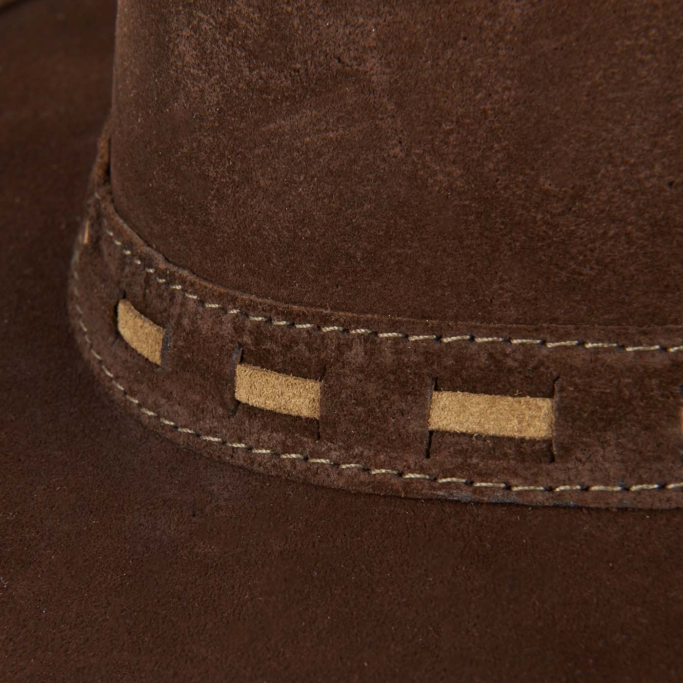 Fiecare cusătură a pălăriei BUSHMAN ONE TEN respectă metodele folosite pentru confecționarea pălăriilor pădurarilor din parcurile naționale sud-africane care se află la originea designului pălăriilor noastre. Pălăria din piele este realizată din piele de vacă de înaltă calitate, cu aspect de piele de căprioară, materialul are doi milimetri grosime și are boruri largi, curbate, care protejează de lumina directă a soarelui. Dispune de trei orificii de ventilație metalice pe părțile laterale, împletitură din piele cu logo-ul BUSHMAN ROGUE deasupra borului și un șnur de piele sub bărbie pentru legare. Pălăria este confecționată manual în Africa de Sud.