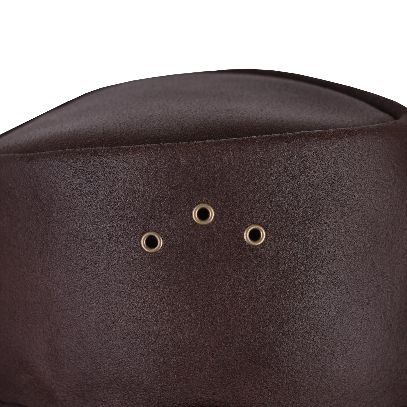 Pălăria este realizată manual, din piele fină cerată, datorită căreia este rezistentă la ploaie. Ventilația este asigurată de trei orificii metalice în partea superioară. Un sac de pânză pentru a depozita pălăria este un accesoriu grozav. Inscripțiile de pe săculețul de pânza vă vor spune că pălăria este din Africa de Sud și vă vor indica de asemenea și cum să pliați pălăria.