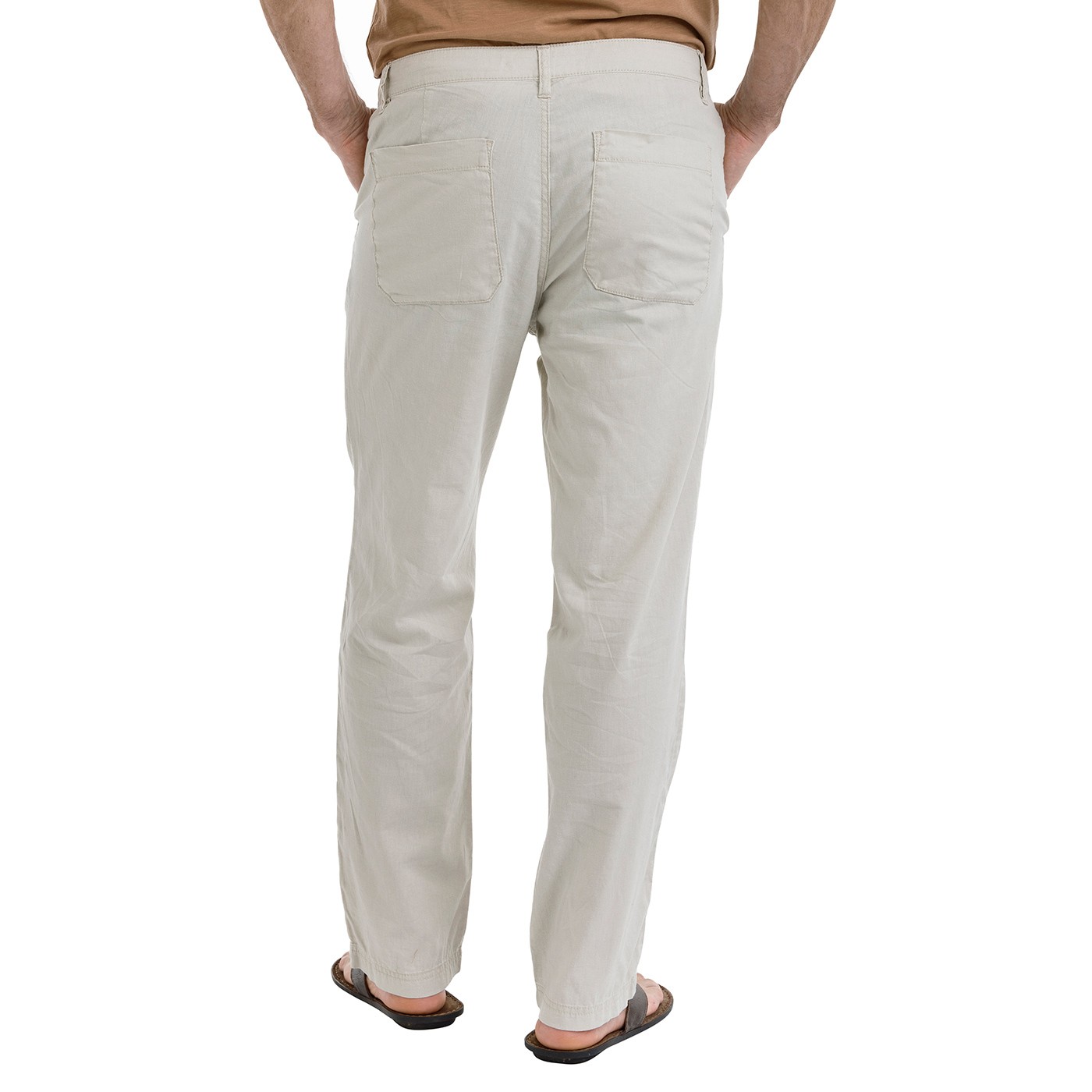 Pantalonii bărbătești lejeri BIRSAY, 55% in și 45% bumbac, casual, potriviți pentru plajă, plimbare, oraș și drumeții. Talia elastică pe lateral asigură o utilizare confortabilă pe tot parcursul zilei. Pantalonii sunt înmuiați prin spălare. Greutate: 165 g/m2.
