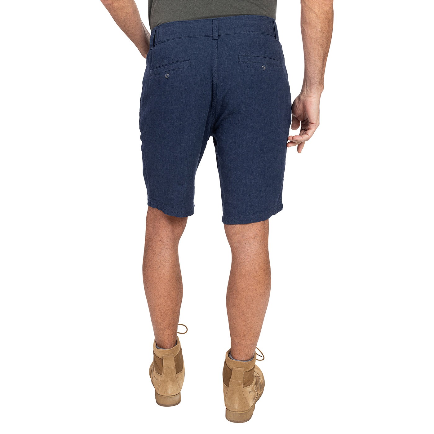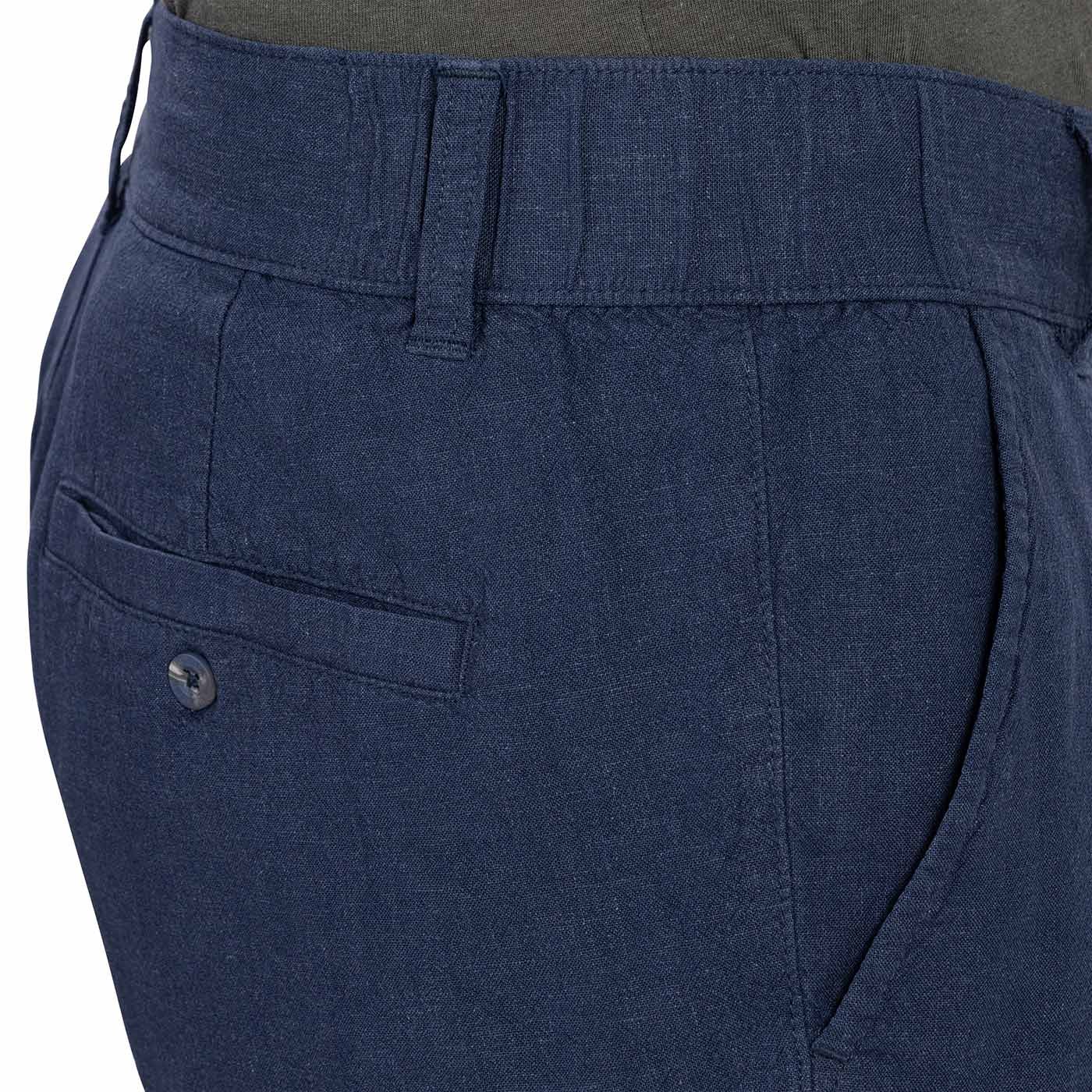 Cu o combinație de in (55%) și vâscoză premium (45%), confortul absolut al acestor pantaloni este imbatabil. Pantalonii scurți chino pentru bărbați, ușori, cu țesătură netedă, sunt ideali pentru oraș, drumeții și vacanțe. Sunt dotați cu două buzunare laterale și două buzunare ingropate pe spate. Talia este fixată în părțile laterale cu benzi elastice late, iar la spate există și șnururi. Greutate: 180 g/m2.