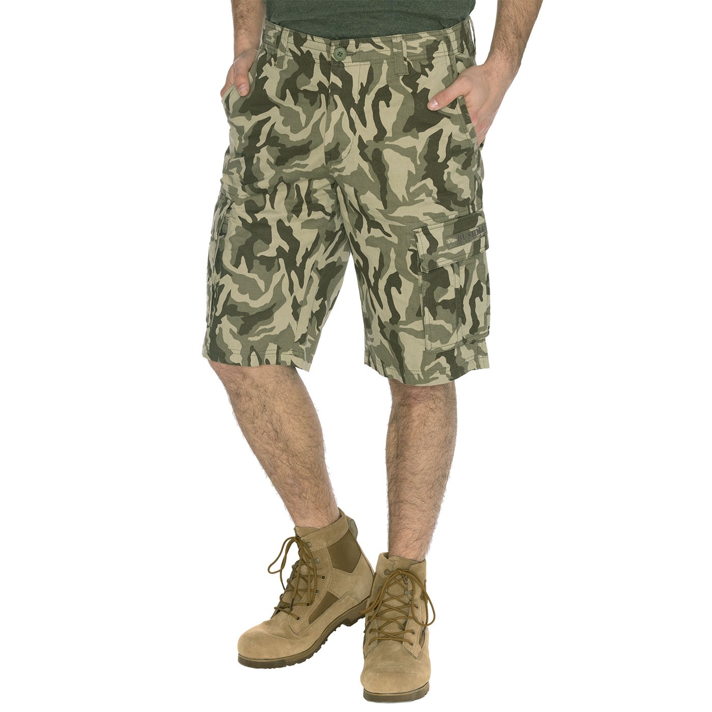 Nu mai căutați altundeva o pereche de pantaloni bună pentru vară. Pantalonii scurți Cargo TROOPER II sunt confecționați din bumbac 100%. Modelele geometrice speciale în relief îi decorează in mod interesant. Camuflajul eficient este realizat printr-o combinație de imprimare cu pigmenți și vopsire reactivă. Dispun de două buzunare spațioase cu nasturi, două buzunare frontale și două buzunare la spate cu nasturi. Spălarea enzimatică face ca țesătura să fie mai durabilă și mai puțin predispusă la uzură. Pantalonii scurți sunt confecționați din bumbac matlasat, cu un cordon de strângere în talie. Greutate: 230 g/m2.