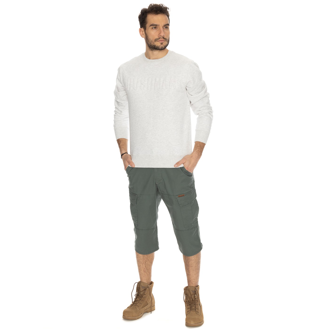 Această senzație de libertate vine din țesătura amestecată ușor elastică, care are o majoritate covârșitoare de bumbac, astfel încât chiar și acești pantaloni scurți rămân respirabili, si nu veți transpira în ei. Alte caracteristici: buzunarele din față sunt întărite cu nasturi metalici, iar dedesubt veți găsi încă o pereche de buzunare închise, care asigură că lucrurile nu vor cădea in ele. Poți găsi aceiași nasturi și pe buzunarele din spate. Toate buzunarele sunt realizate din material de bumbac cu imprimeu BUSHMAN "triplu V" - simbolul garanției confortului.