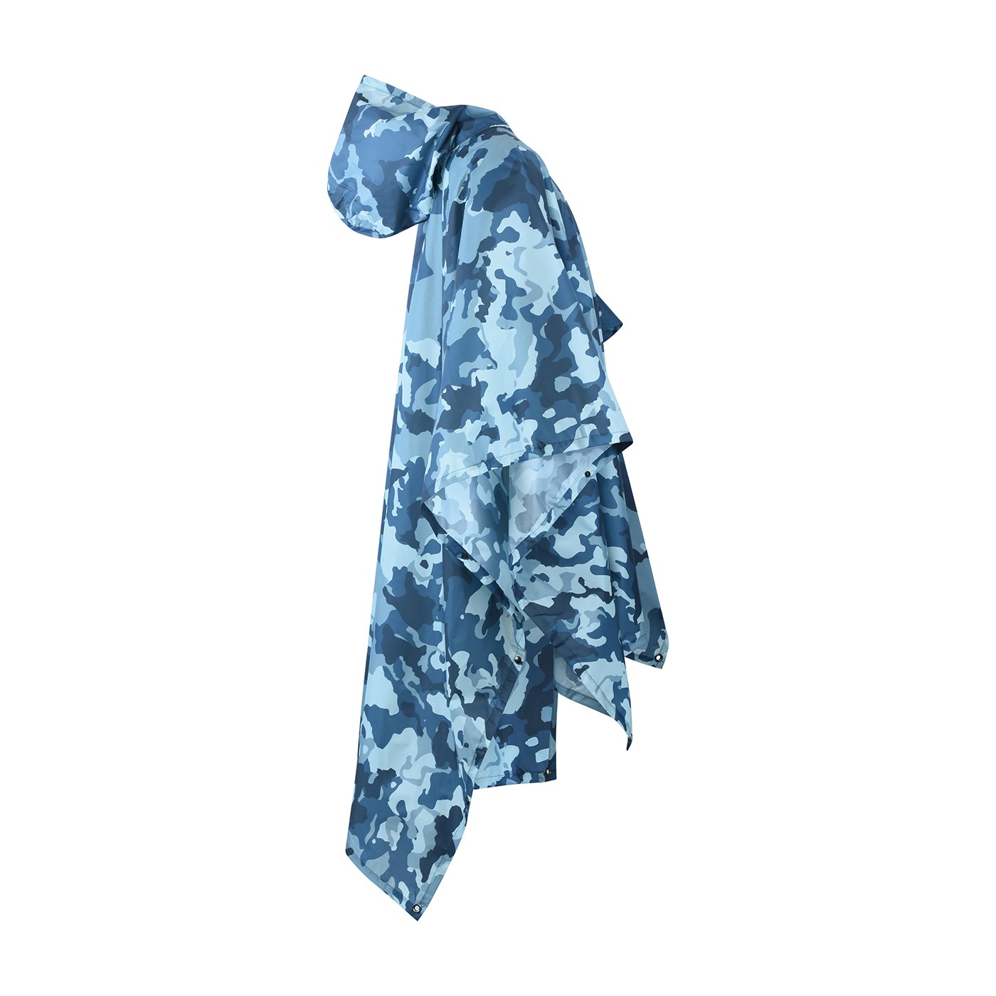 După desfacerea capselor laterale (care fixează „mânecile”), poncho-ul poate fi transformat într-o prelată impermeabilă de 220 × 145 cm (în colțuri există ochiuri solide din cupru pentru o fixare ușoară). În doar câteva secunde, puteți transforma poncho-ul într-o prelată spațioasă sau într-un adăpost improvizat pentru a sta pe el sau pentru a dormi.