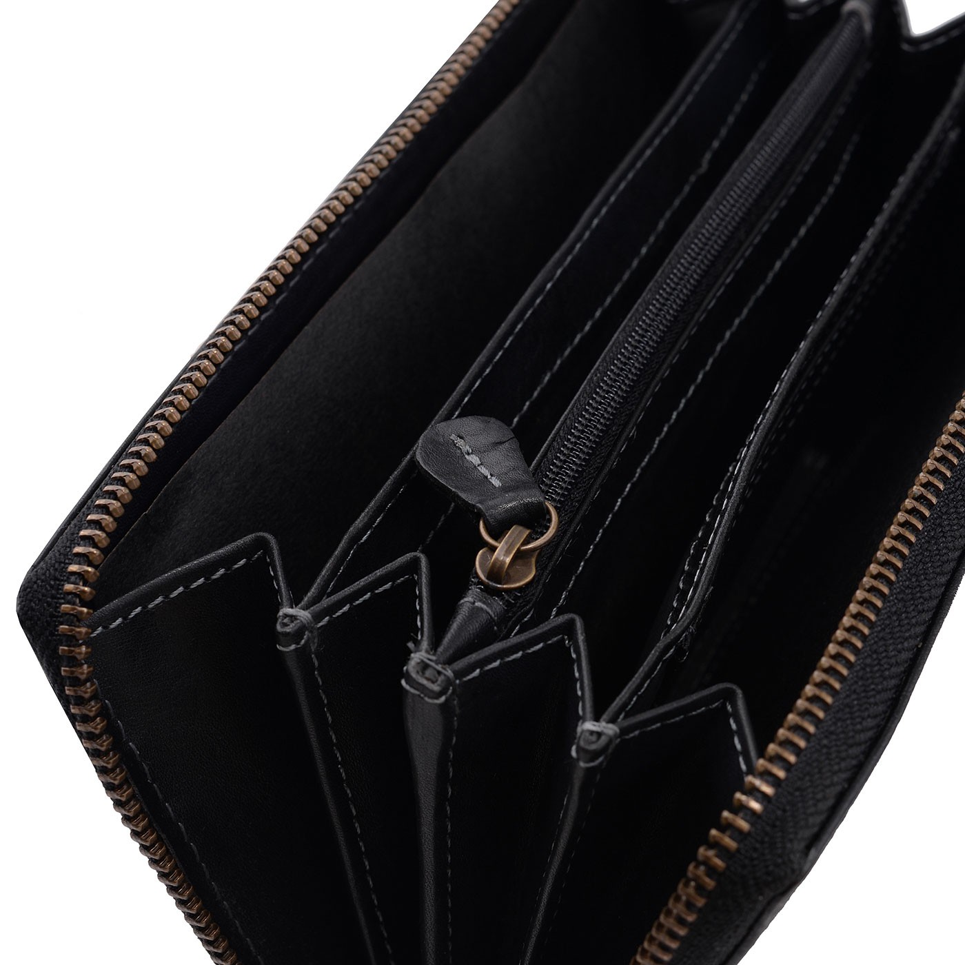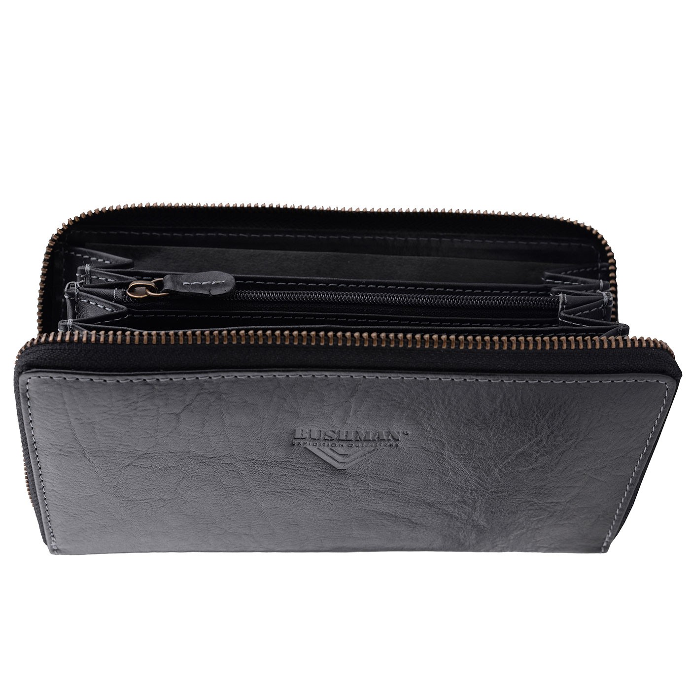 Se închide cu fermoar metalic de înaltă calitate, pe toată lungimea sa. Cu siguranță veți aprecia dotarea sa complexă, cu compartimente pentru cărți de credit, cărți de identitate și alte acte de identitate. În interior există și un buzunar pentru monede care poate fi închis cu fermoar. Sigla BUSHMAN în relief pe față.