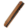 Az elegáns olívafa nyél kényelmesen illeszkedik a kézbe, és egy beágyazott BUSHMAN logó díszíti. A kés mechanizmusa kerámia csapággyal van ellátva a sima nyitás érdekében, egy piros titán csapágybetéttel és egy nyitótüskével a könnyű kezelés érdekében. A kés klipsz nélkül lett tervezve – minimalista, letisztult és funkcionális.