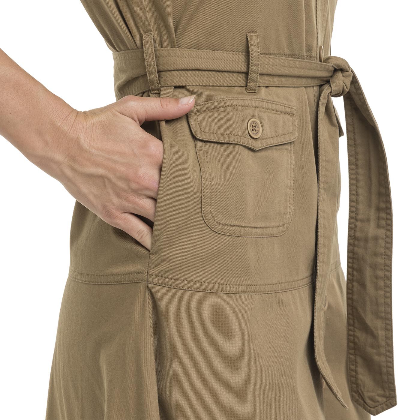 Această rochie-cămașă lungă este combinația perfectă între confort și practicitate, cu o notă de eleganță casual. Este confecționată din bumbac ușor periat, moale la atingere și plăcut de purtat. Manșetele largi, care se pot răsuci, și cusăturile detaliate adaugă un plus de stil acestei rochii, în timp ce buzunarele cu clapă și buzunarele laterale îți permit să ai mereu la îndemână tot ce ai nevoie (clapele de la piept sunt doar decorative). Cureaua detașabilă te va ajuta să-ți accentuezi silueta feminină.