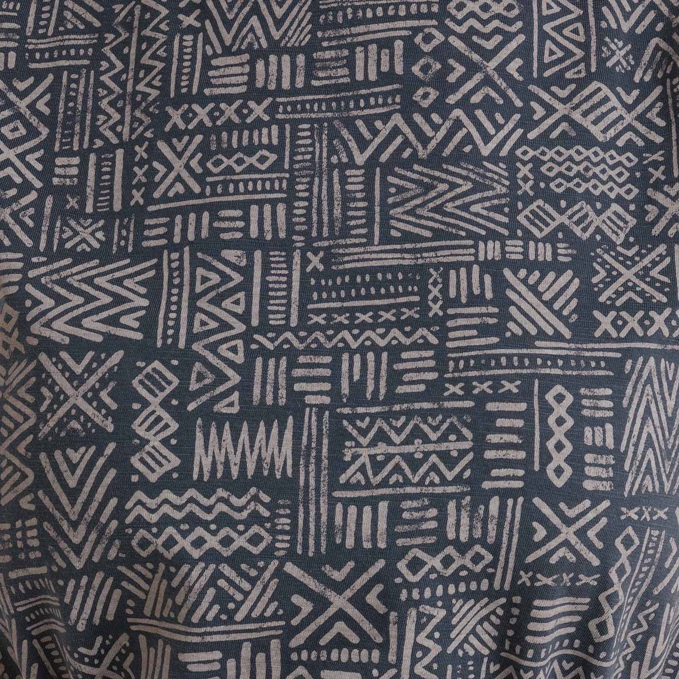 Rochie de damă din bumbac, din jerseu fin cu structură natural neregulată (slub jersey), cu imprimeu african pe întreaga suprafață. Croiala dreaptă și decolteul bărcuță asigură confort, mâneca scurtă căzută oferă un aer lejer. Cureaua subțire din material textil în talie (poate fi introdusă în bucle) permite evidențierea discretă a siluetei. Două buzunare laterale în cusătură sporesc funcționalitatea, iar detaliile de brand Bushman (aplicații țesute pe mânecă și tiv, șnur pentru întărirea tivului posterior al decolteului) completează stilul.