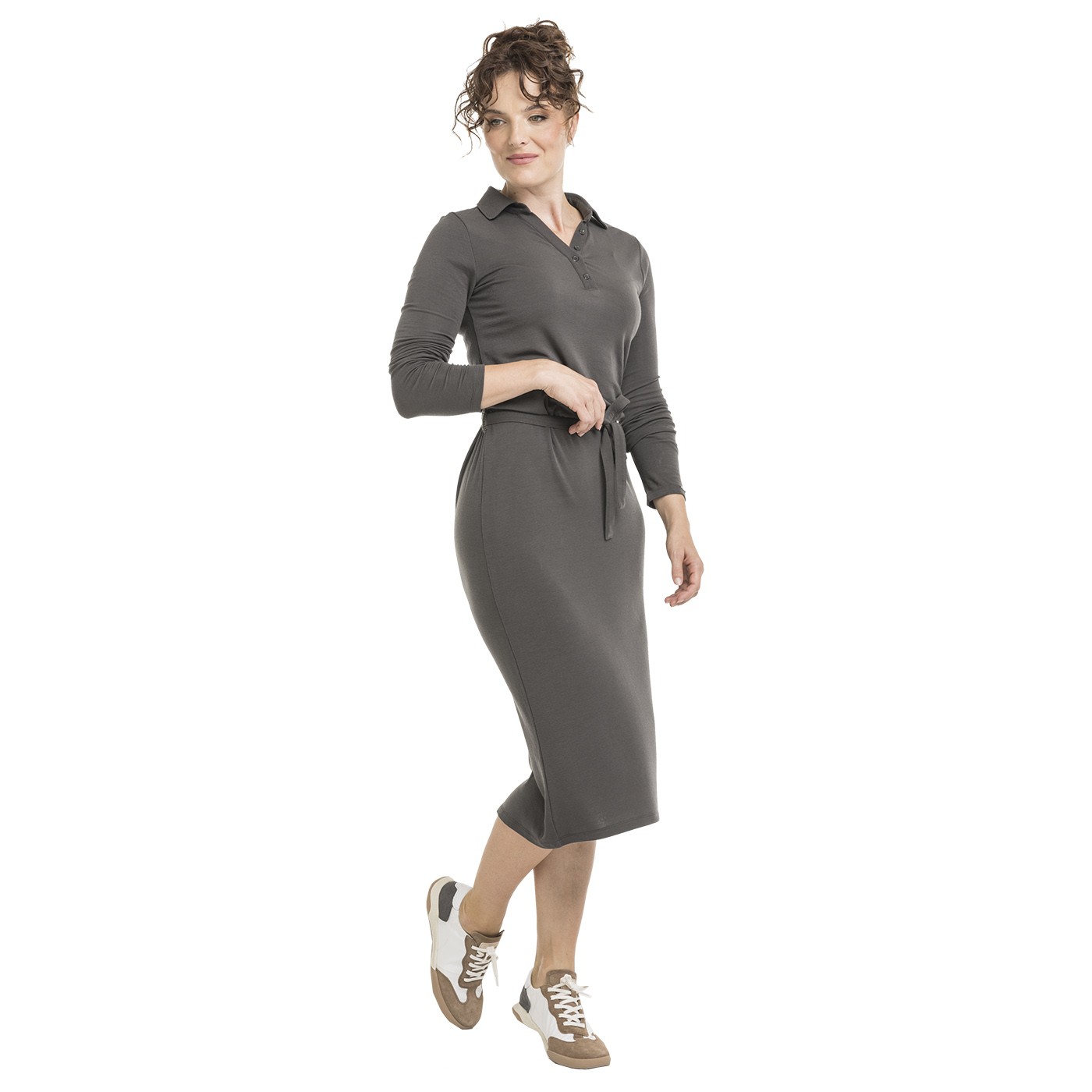 O rochie care îți va pune în valoare silueta. Tricotul semi-deschis cu nervuri (1x1), cu guler și curea, are un aspect elegant și casual, iar datorită combinației de TENCEL™ lyocell (76%), lână (19%) și elastan (5%), te vei îndrăgosti de ea încă de la prima purtare. Este flexibilă, moale, plăcut de călduroasă și, în același timp, ușoară, astfel încât nu te va incomoda chiar dacă o porți toată ziua. Asortează-o cu adidași sau cizme de piele și vei avea o ținută fiabilă pentru zilele mai reci.