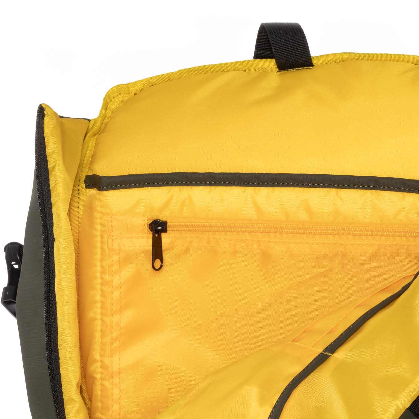 Fermoarele de pe părțile laterale ale rucsacului oferă acces convenabil la interior și puteți fixa rucsacul încărcat cu o altă cataramă în partea de sus. În interiorul părții din spate se află un buzunar separat pentru un laptop cu dimensiunea de până la 15,6", urmat de un alt buzunar cu fermoar pentru documente A4, de exemplu. Există, de asemenea, buzunare pentru cărți de vizită sau creioane, precum și o secțiune din plasă pe ambele părți pentru sticle. Căptușeala galbenă contrastantă este ușor de spălat.