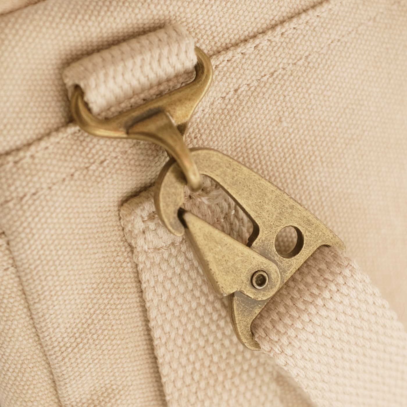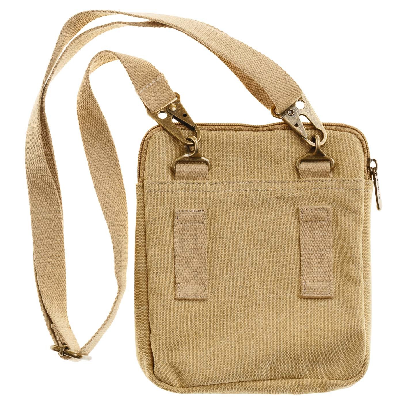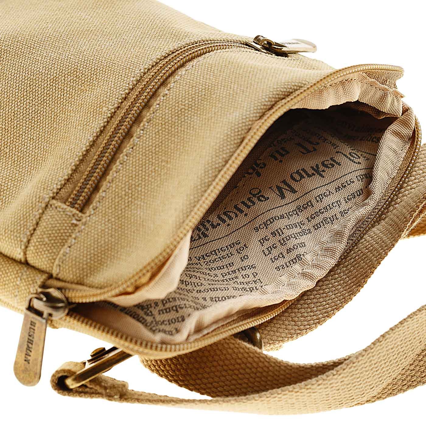 O geantă confecționată din bumbac 100% (fibră naturală), material foarte rezistent și durabil, cu detalii din piele naturală și o curea detașabilă pentru purtare peste umăr sau în jurul taliei. Este echipată cu o serie de buzunare practice.