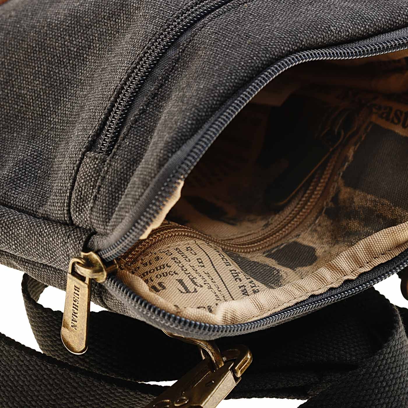 O geantă confecționată din bumbac 100% (fibră naturală), material foarte rezistent și durabil, cu detalii din piele naturală și o curea detașabilă pentru purtare peste umăr sau în jurul taliei. Este echipată cu o serie de buzunare practice.
