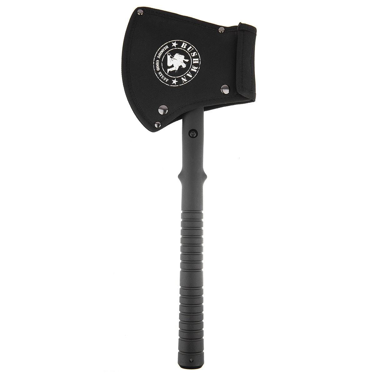 Tăierea lemnelor pentru foc, bătutul cu ciocanul a țărușilor cortului, baterea unui cui, baterea cărnii pentru grătar sau strângerea unui șurub? Nicio problemă cu BUSHMAN AX. Capul toporului este din oțel inoxidabil 420, lama lungă poate fi folosită nu doar ca topor, ci și ca un cuțit. Cealaltă parte poate fi folosită ca un ciocan, găurile sunt folosite pentru a slăbi sau strânge piulițe de diferite dimensiuni. Tija suficient de lunga este realizata din mikarta, care este un material laminat solid ușor si extrem de durabil. Lama este protejată de o husă practică de nylon prevăzută cu o buclă pentru a putea fi agățată, de exemplu, de un rucsac. E timpul pentru o altă expediție: în pădure, cu cortul, sau într-o nouă aventură. Material: Lama: otel inoxidabil 420, Coada: mikarta, Husa din nailon, Lungimea lamei: 13 cm, Lungime totala: 42 cm, Greutate: 626 g.