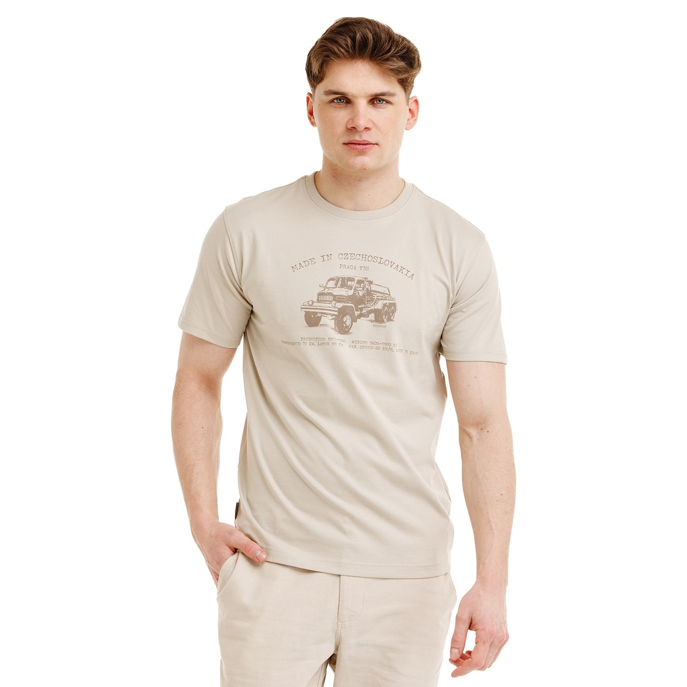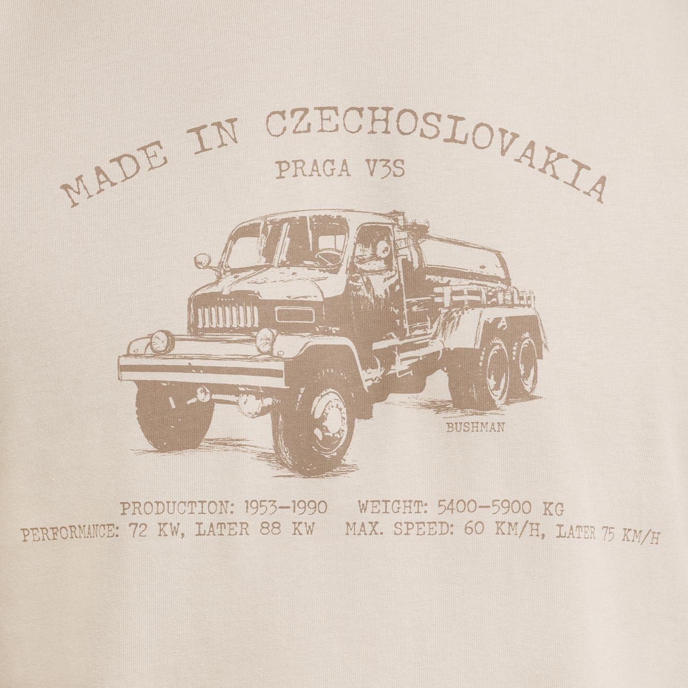 ADDO este un tricou clasic din bumbac, care combină confortul și stilul cu caracterul unic al unei ediții limitate. Materialul este fin, respirabil și plăcut la atingere, iar croiala dreaptă și mâneca scurtă asigură confort pe tot parcursul zilei. Imprimeul „BOBSTOCK” Made in Czechoslovakia este completat de motivul legendarului vehicul V3S, simbol al ingineriei solide și al rezistenței. Acest clasic nu se obosește să explice – cine știe, știe. Imprimeul este un omagiu adus tehnicii cehoslovace, care și-a câștigat respectul atât acasă, cât și în lume.