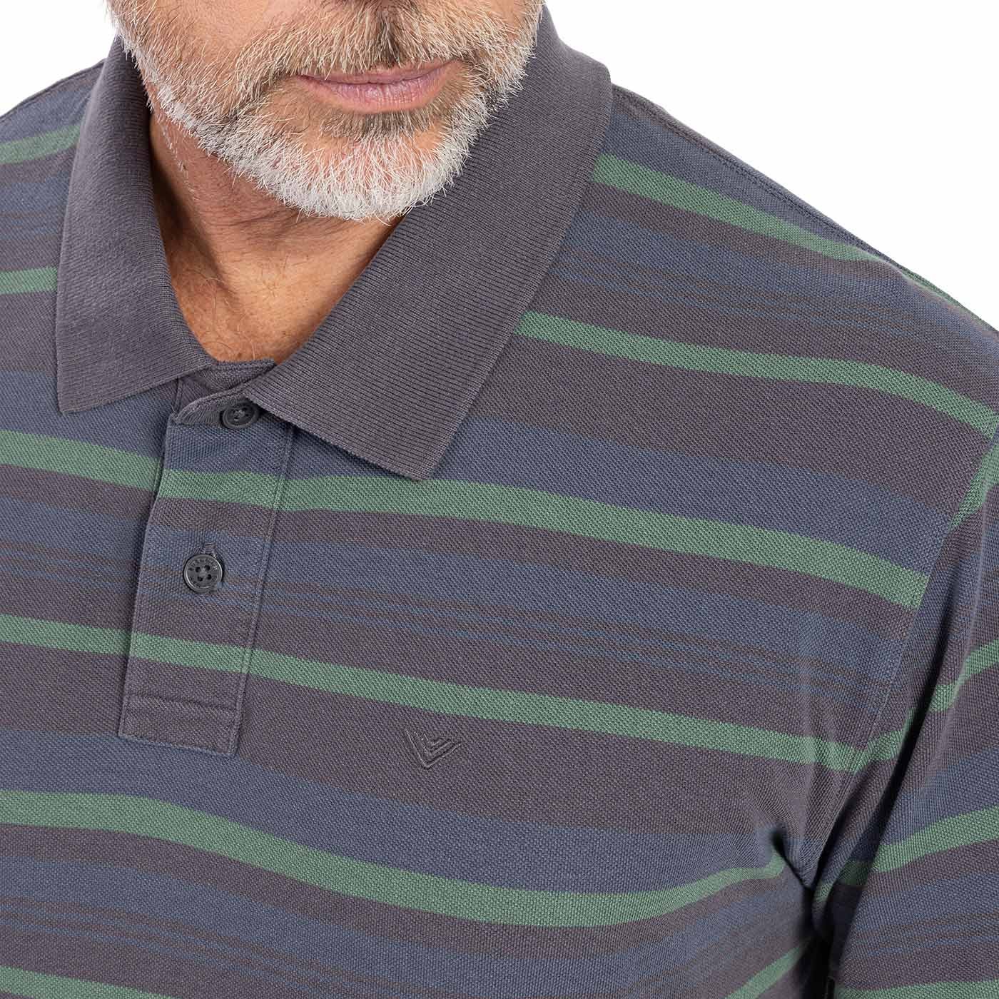 Tricoul nostru cu dungi orizontale DANTE este excepțional datorită tricotajului piqué. Textura în relief a suprafeței sale imită efectul de quilting. Acest tricou cu guler, semi-transparent, este decorat cu broderia brandului nostru pe față. Greutate: 160-180 g/m2, 100% bumbac.