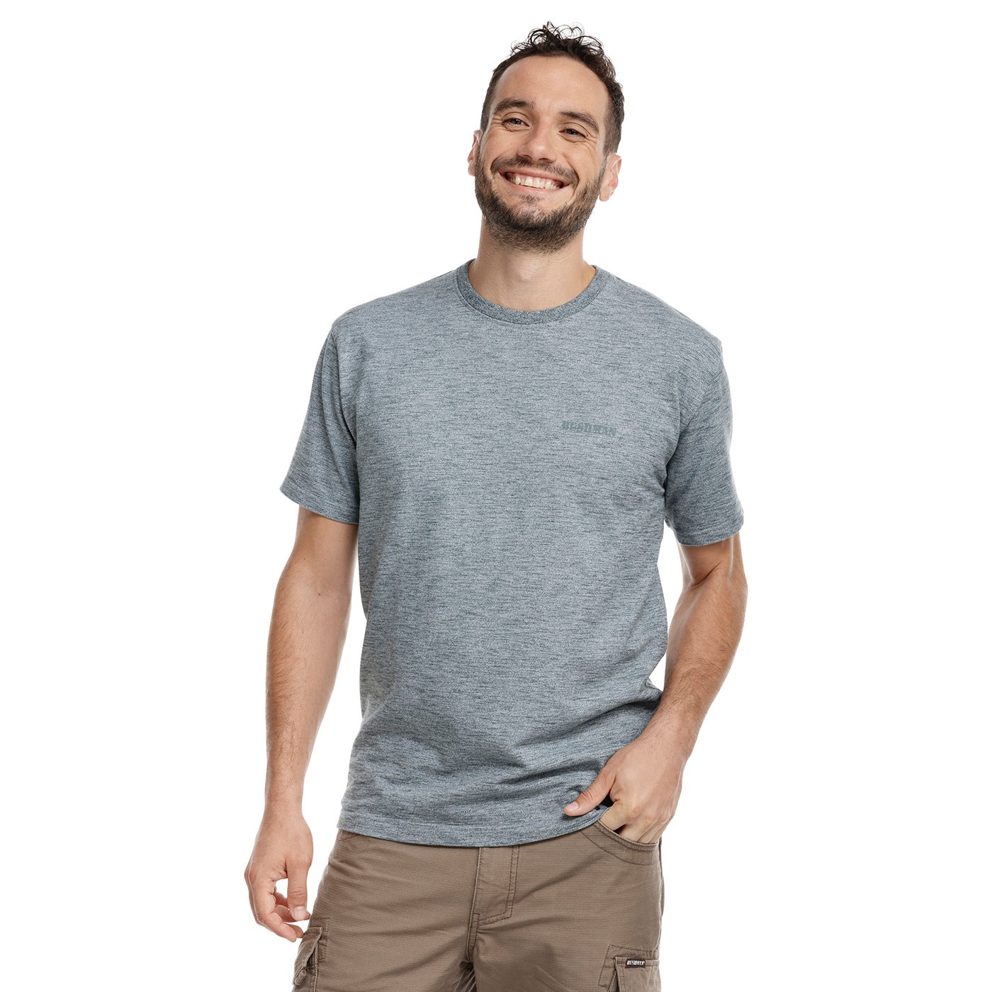 Acest tricou bărbătesc cu croială clasică iese în evidență prin aspectul unic al țesăturii sale melange. Branding-ul discret în aceeași culoare și eticheta de pe lateral îi conferă o notă de eleganță. Este fabricat din bumbac 100%, dedurizat delicat prin spălare, cu o greutate de 240 g/m².