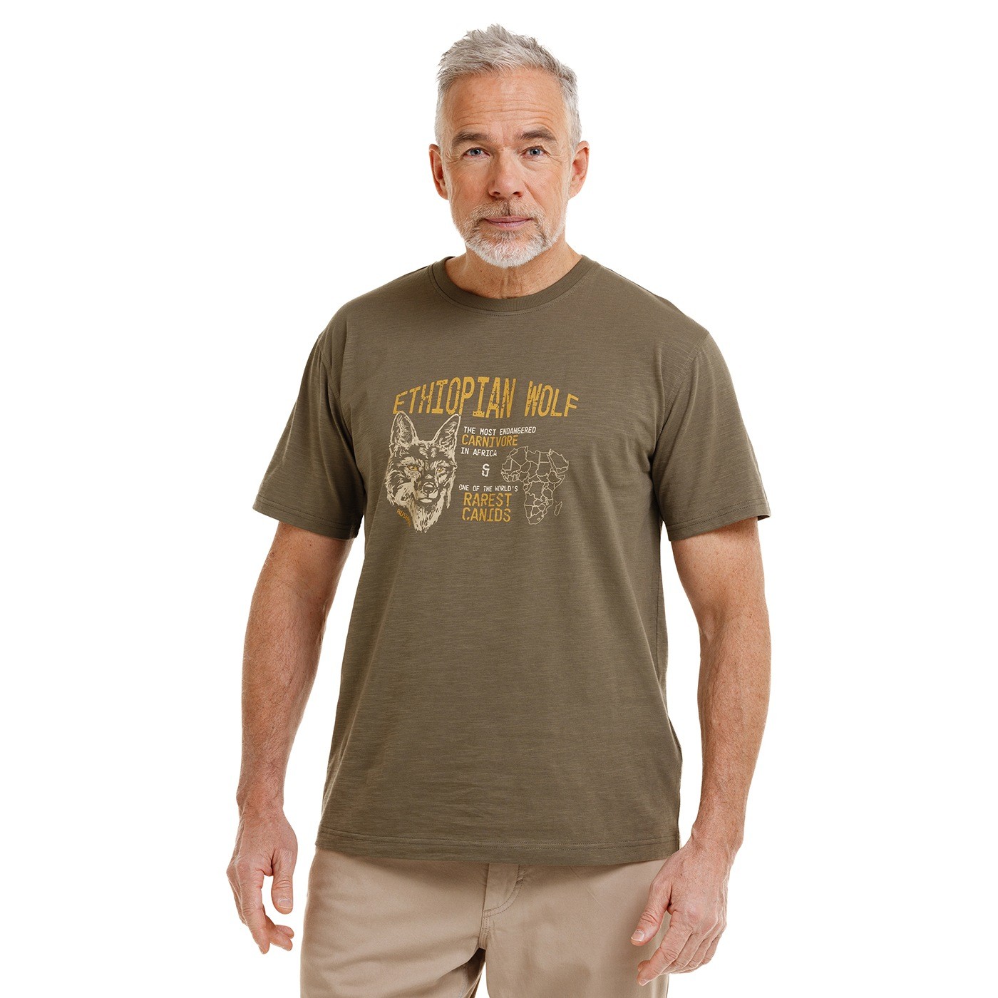 Tricoul KAY cu mânecă scurtă este realizat din 100% bumbac (tricot cu structură natural neregulată – slub jersey). Croiala dreaptă se potrivește confortabil oricărei siluete. Imprimeul animalier de pe partea frontală și imprimeul de brand de pe spate subliniază caracterul mărcii BUSHMAN.