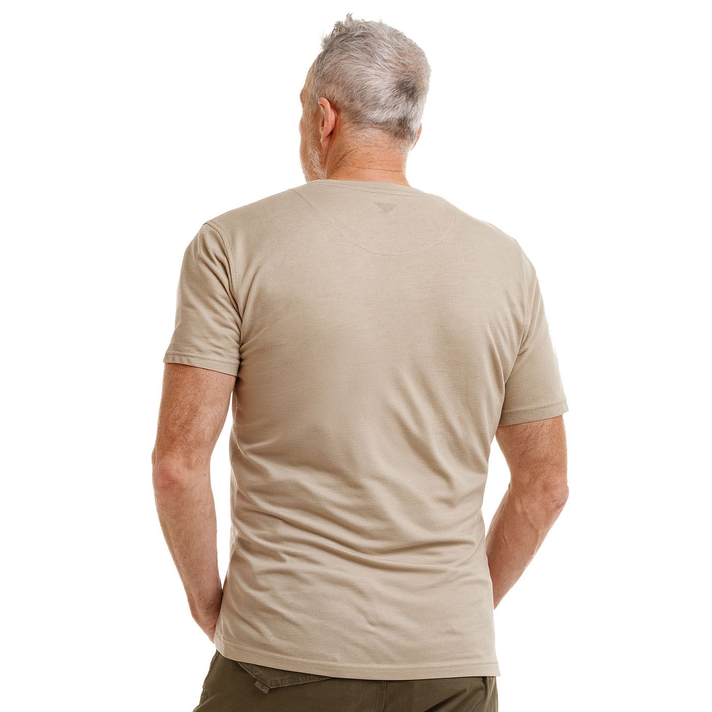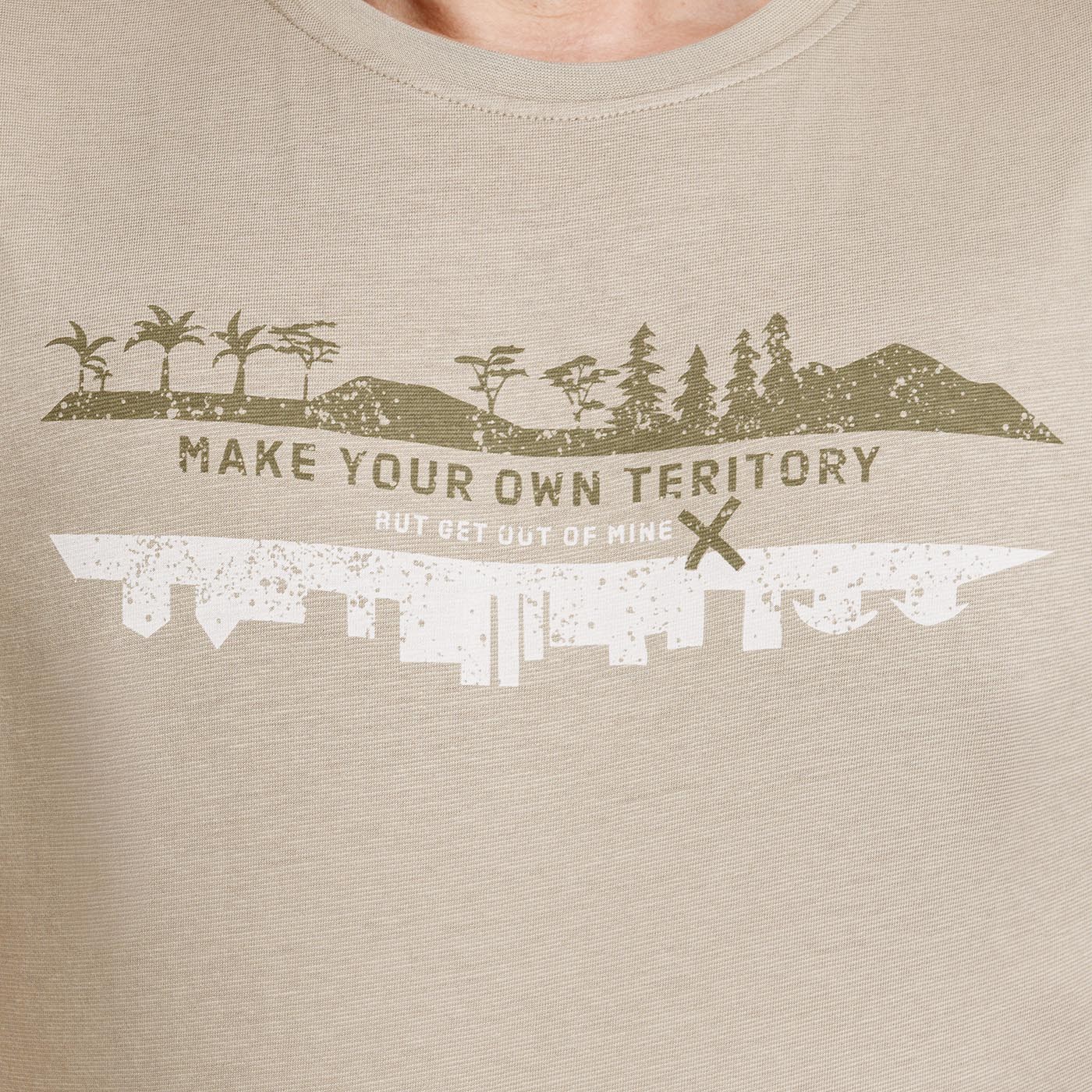 LASAL este un tricou de vară universal, care îmbină confortul, lejeritatea și o atitudine relaxată. Amestecul fin de bumbac și viscoză ECO VERO™ este plăcut la atingere, respirabil și se adaptează bine corpului. Croiala dreaptă, mai îngustă, se potrivește excelent, iar mâneca scurtă este potrivită și pentru purtare în straturi. Imprimeul „Make Your Own Territory”, cu motivul orizontului montan care se transformă în reflexia orașului, simbolizează libertatea de a alege între natură și civilizație. Imprimeul de brand de pe spate subliniază subtil filosofia Bushman de independență.