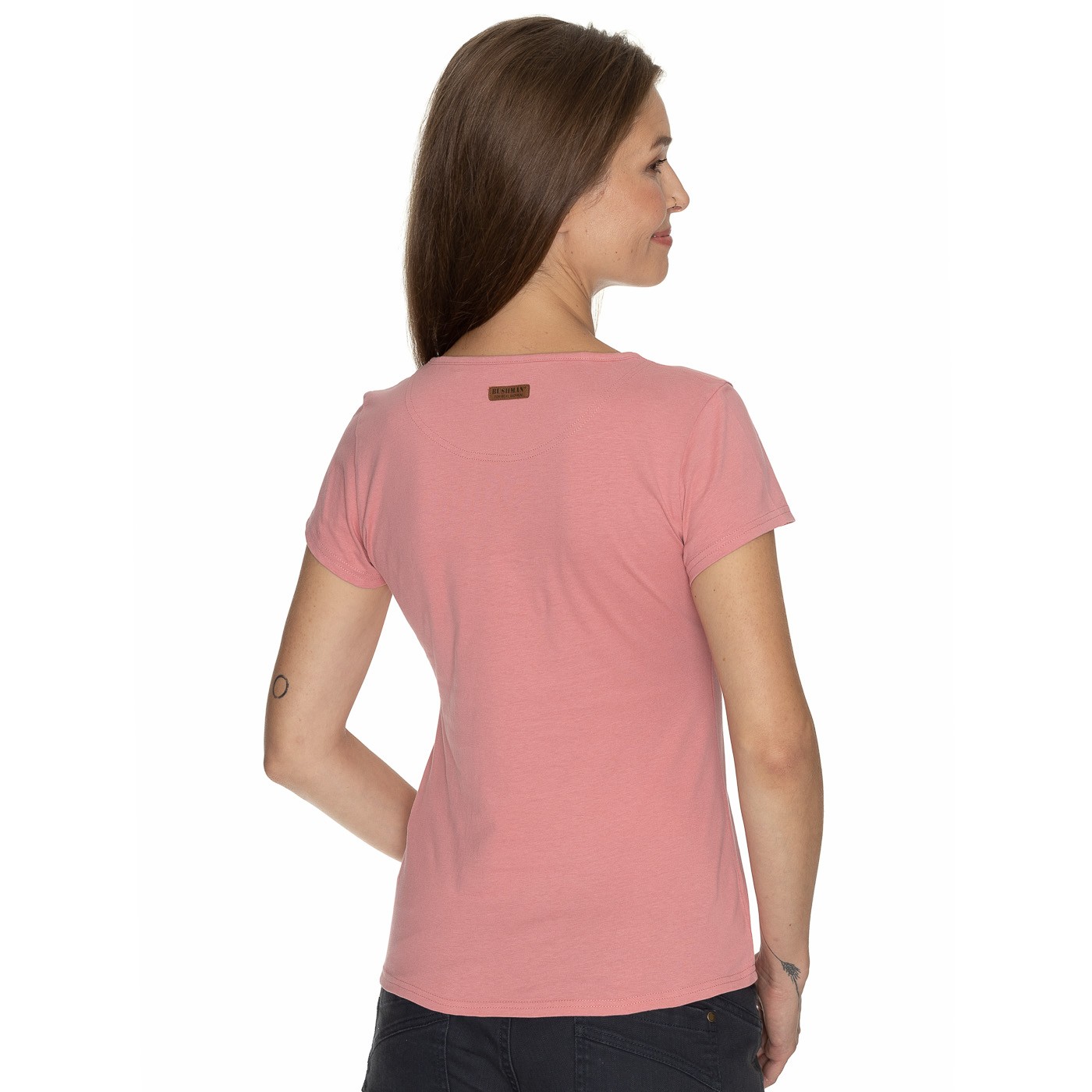 Un tricou din clasa medie? Aparențele sunt înșelătoare! Tricoul de damă cu croiala clasică NATALIE II este confecționat din bumbac organic cu cel mai strict certificat international de biotextil, GOTS - Global Organic Textile Standard. In plus , se adaptează frumos liniei siluetei feminine si are o lungime plăcută, benefică. Veți găsi sigla BUSHMAN și „triplul V” , simbol al garanției si bunăstării, cu aplicații din piele de căprioară de bun gust. Fii cine ești - o femeie adevărată!