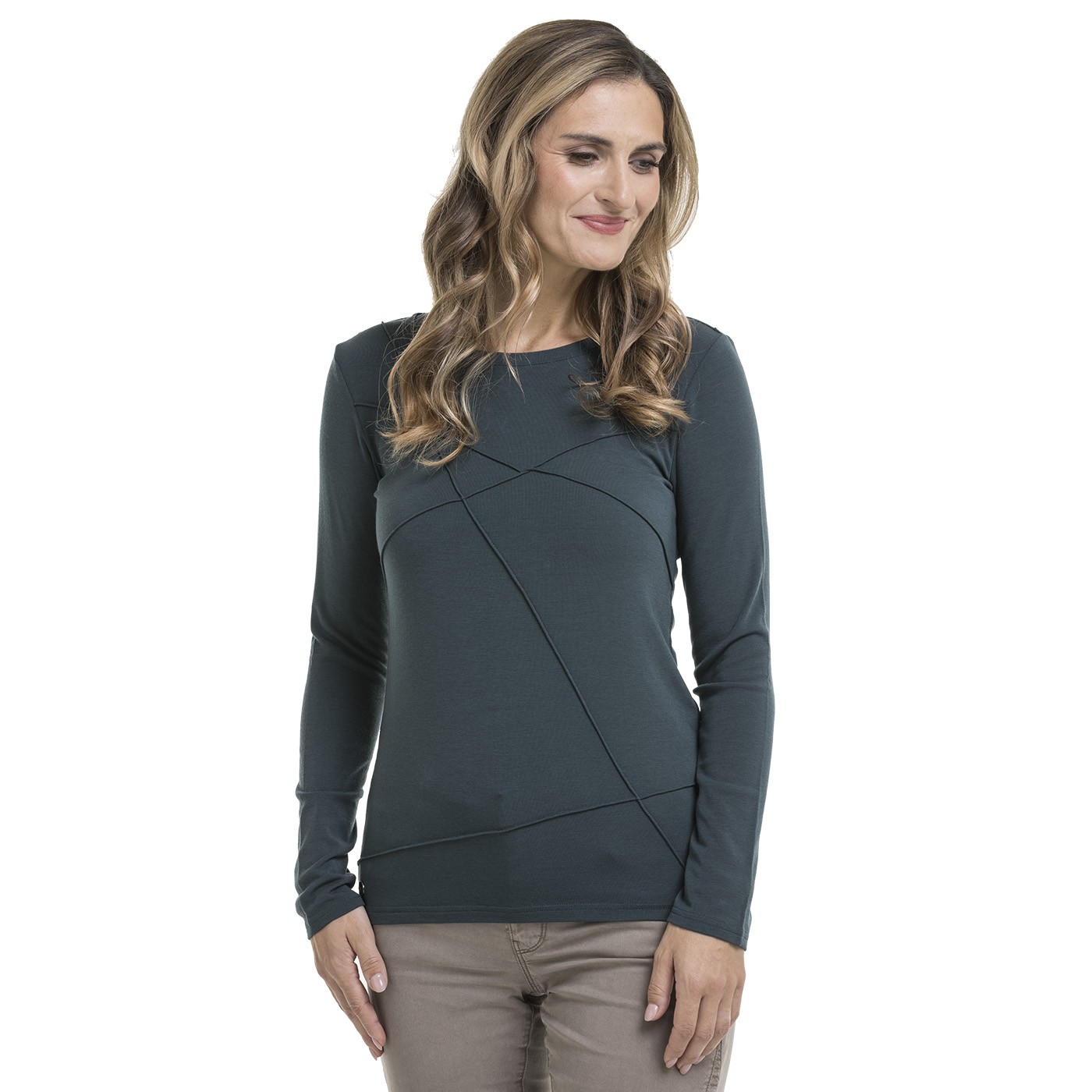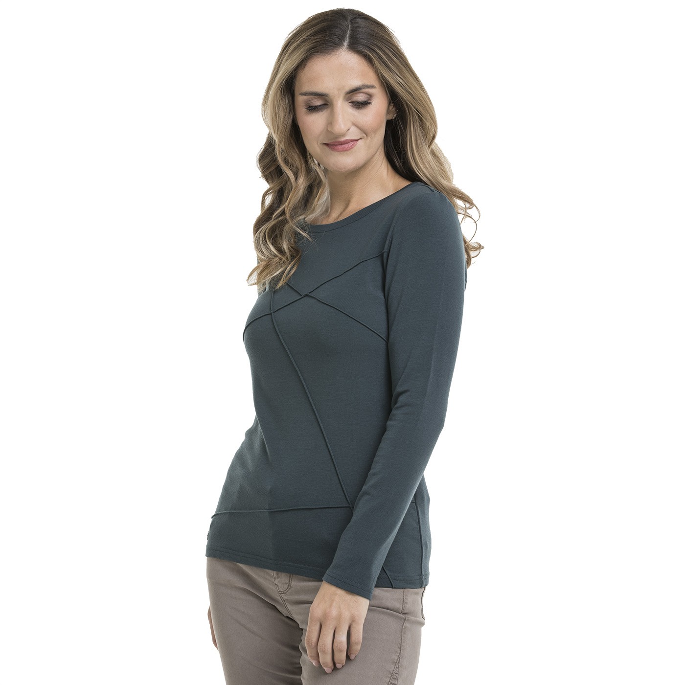 Mâneci lungi, confort termic plăcut și libertate de mișcare – un tricou pe care îl poți purta de dimineața până seara, în oraș sau în natură. Tricotaj fin cu nervuri, cu un procent de lână și Tencel™, lyocellul absoarbe umezeala, își păstrează forma și se potrivește perfect. Datorită elastanului, se adaptează la fiecare mișcare, indiferent dacă lucrezi, călătorești sau te relaxezi. Aplicația decorativă și micul logo din față adaugă un stil feminin fără detalii inutile. Spălat pentru un confort maxim.