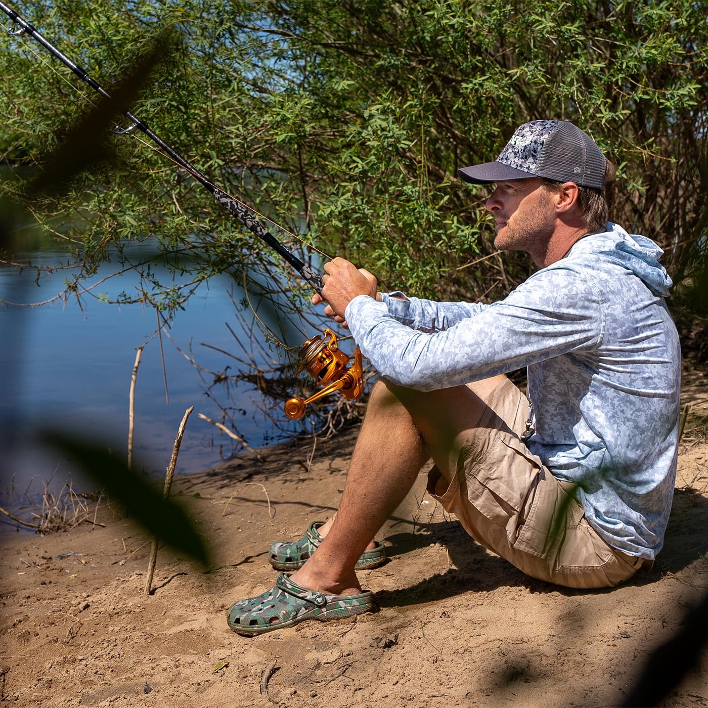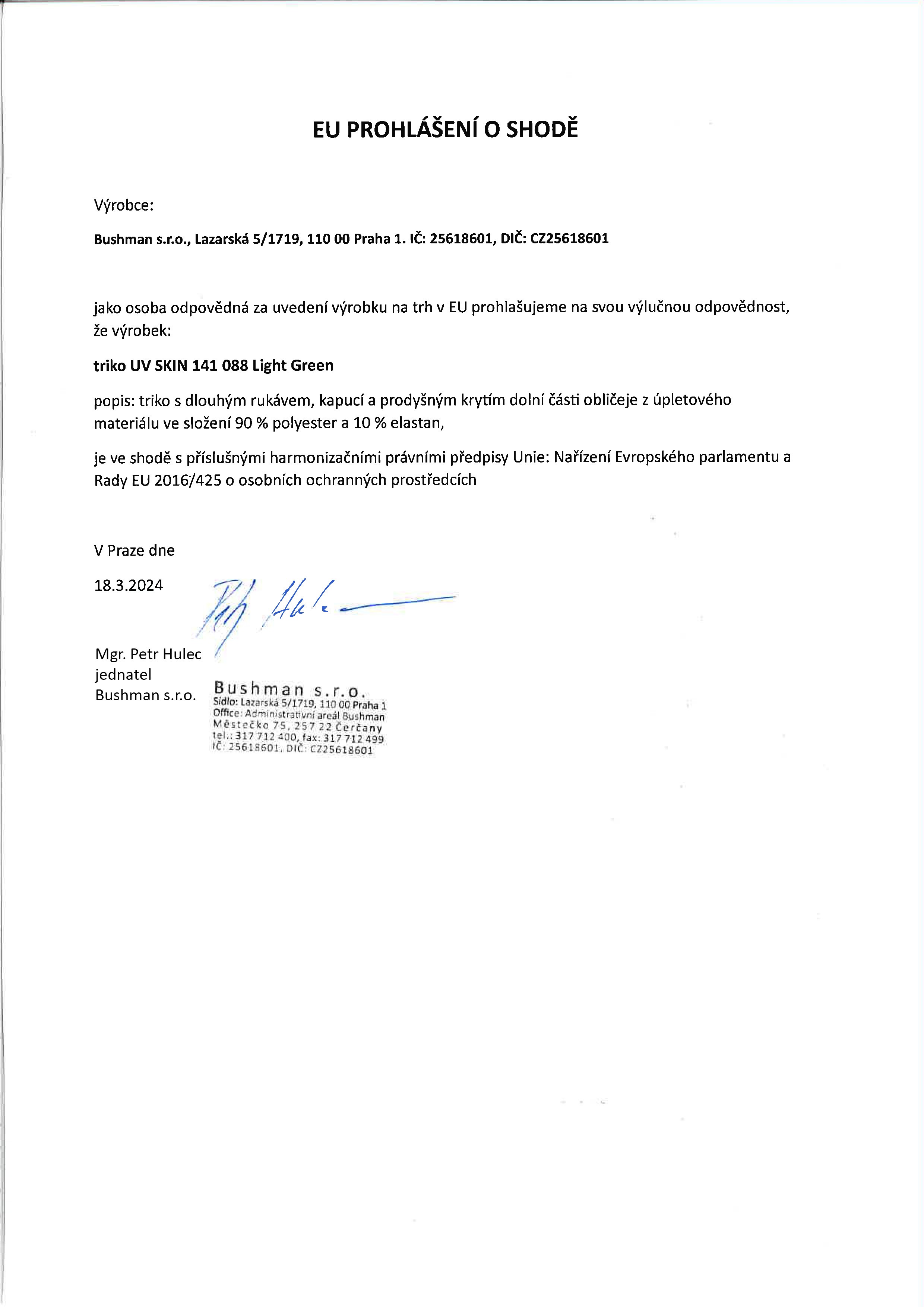 Acest tricou pentru bărbați UV Skin este conform cu Regulamentul 2016/425/UE. Oferă protecție împotriva radiațiilor ultraviolete și este în conformitate cu AS/NZS 4399:2017. Tricoul cu mânecă lungă cu imprimeu UV Skin este confecționat special cu o țesătură cu factor de protecție UV 50+, care este realizată din 90% poliester și 10% elastan. Acest lucru asigură o protecție eficientă împotriva componentei nocive a luminii solare și vă protejează - nu doar atunci când pescuiți.