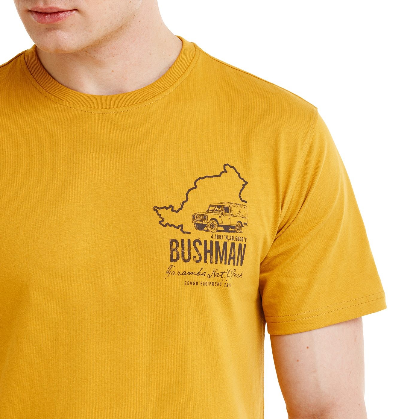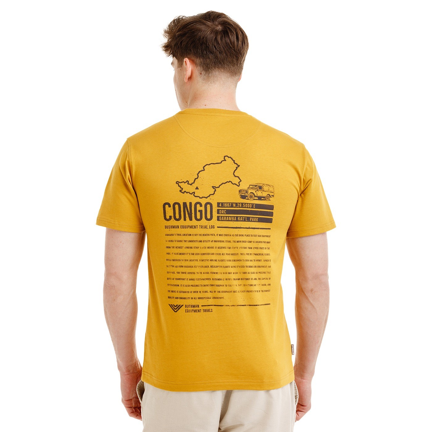 Pe piept vei găsi un mic imprimeu care face trimitere la o călătorie prin Congo, adânc în Parcul Național Garamba, iar pe spate nu lipsește un motiv grafic puternic cu informații despre traseul dificil și locul unde se merge după propriile reguli. Acest tricou este un omagiu adus expedițiilor autentice, al căror scop este drumul în sine.
