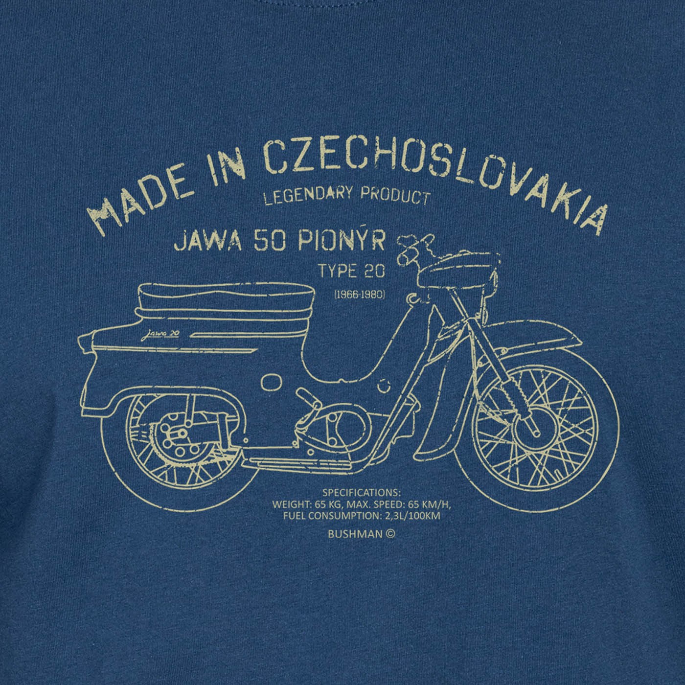 Apreciem lucrurile care au cucerit lumea sau inimile generațiilor trecute. De exemplu, „Fichtl” sau „Pincek”, tip 20 cu plăcuțe sau tip 21 Sport. Multe generații au crescut cu această motocicletă fabricată în Považské strojírny. Dezvoltată la mijlocul secolului al XX-lea ca mijloc de transport accesibil unui public cât mai larg, această motocicletă a fost și rămâne mașina ideală pentru învățarea principiilor unui motor în doi timpi și pentru antrenarea răbdării. Cu o ediție specială de imprimeuri pe această tema, applicate pe tricourile noastre cu mânecă scurtă din bumbac, BUSHMAN aduce un omagiu produselor legendare „fabricate în Cehoslovacia”. 100% bumbac, 180 g/m2, croială dreaptă.