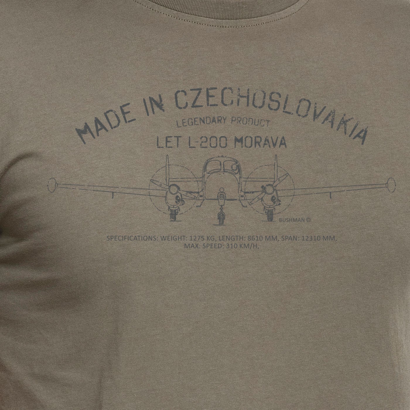 Apreciem lucrurile care au cucerit lumea sau inimile generațiilor trecute. Trebuia să devină un nou taxi aerian, iar dezvoltarea sa a început la Let Kunovice în 1955. Let L-200 Morava, autoportant și bimotor, cu aripă joasă, pentru un pilot și trei până la patru pasageri, este utilizat în prezent în principal pentru zboruri turistice datorită popularității și calității sale. Cu o ediție specială de imprimeuri pe tricourile noastre din bumbac cu mânecă scurtă, BUSHMAN aduce un omagiu produselor legendare „fabricate în Cehoslovacia”. 100% bumbac, 180 g/m2, croială dreaptă.