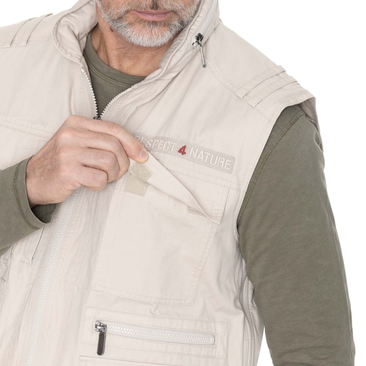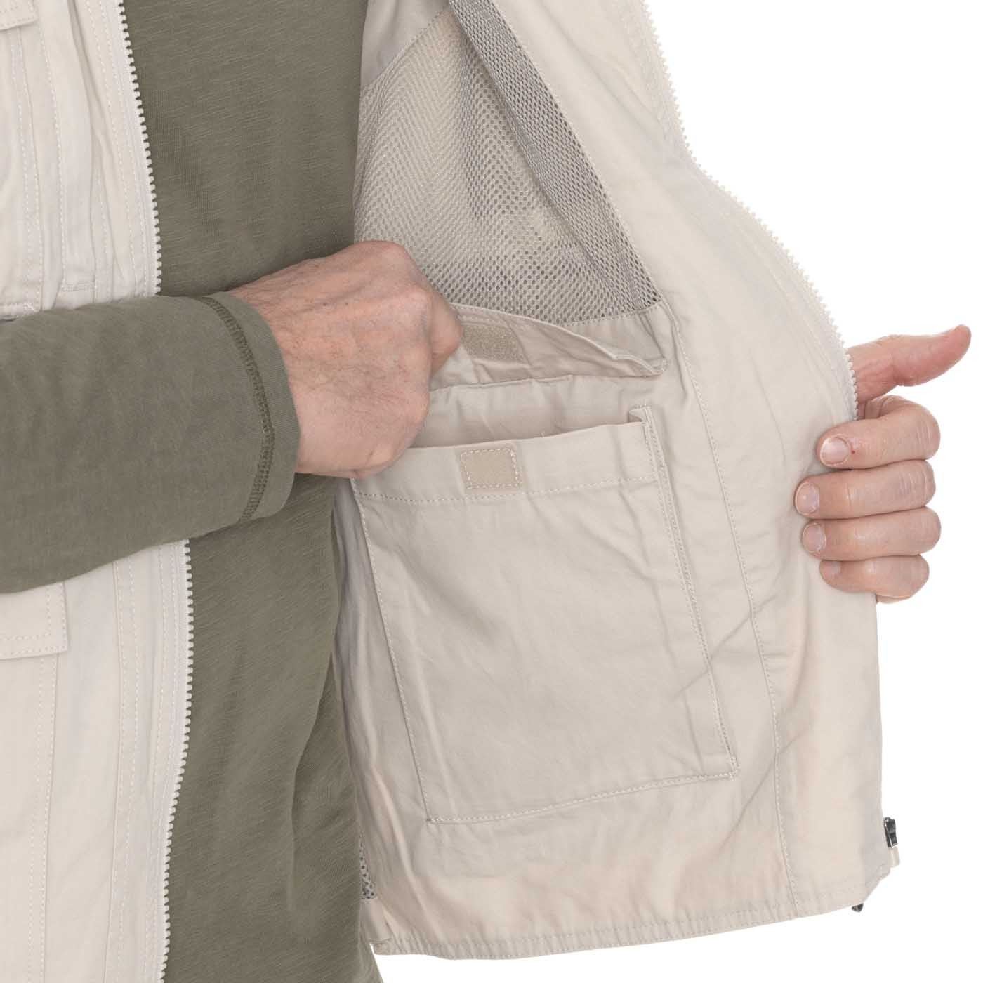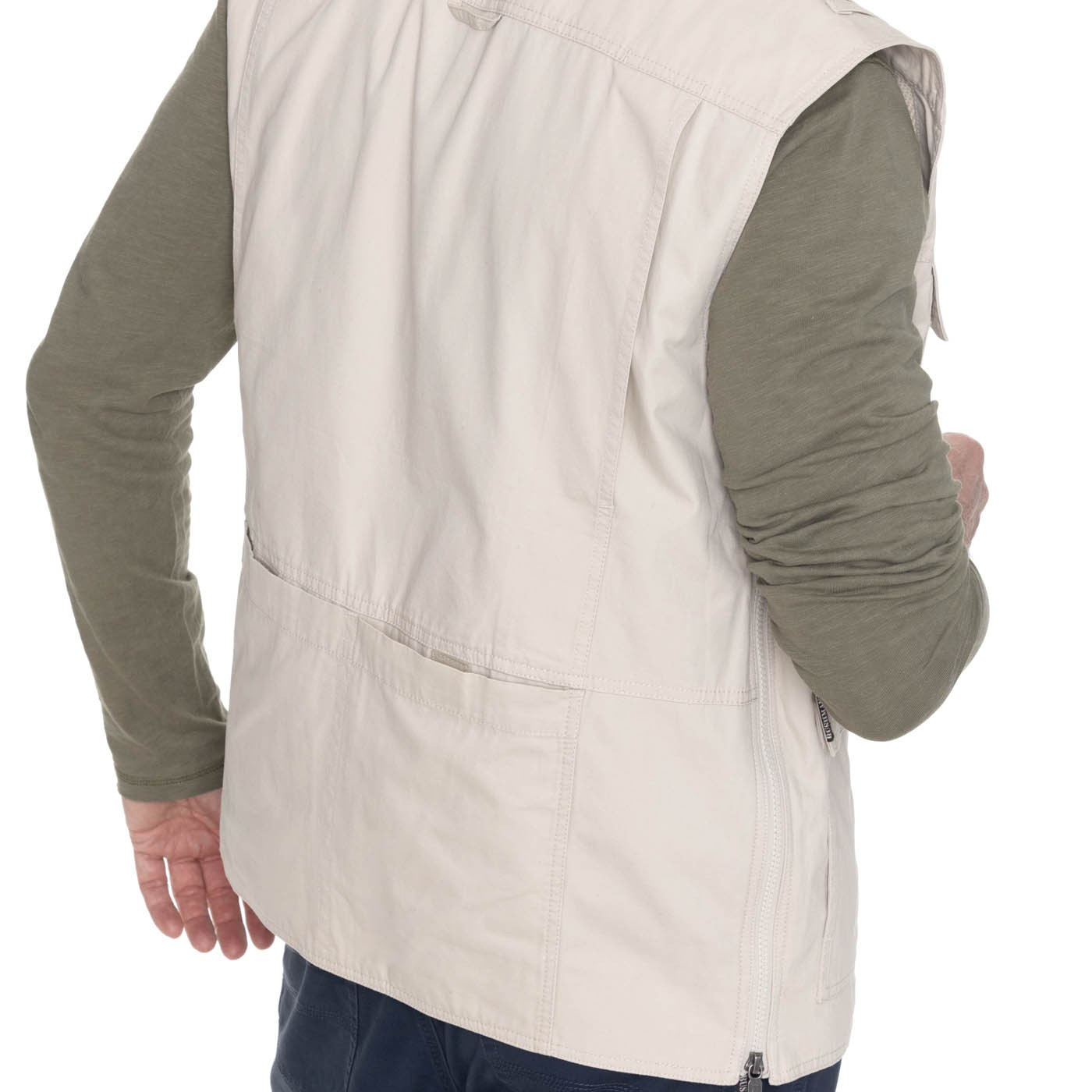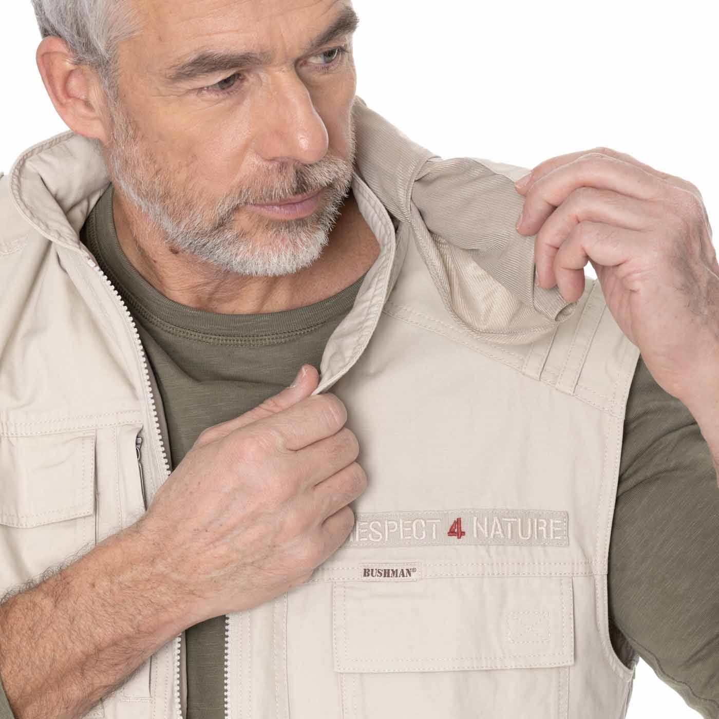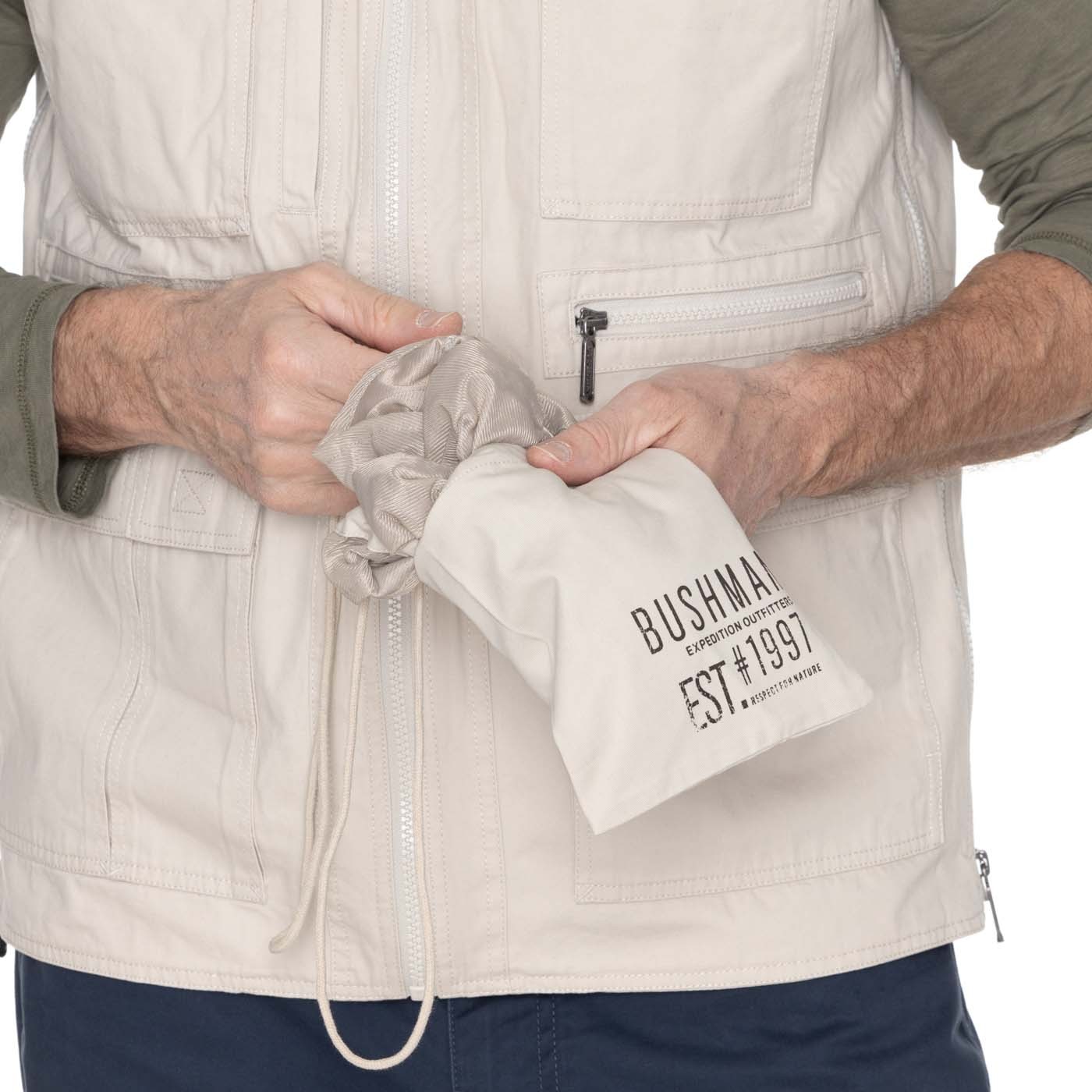 O vestă de expediție clasică pentru aventurierii experimentați. Această vestă BUSHMAN FARGO II este confecționată din țesătură de bumbac de greutate medie, având o țesătură de pânză de in. Este durabilă și pregătită pentru toate condițiile dificile. Are suficiente buzunare în față și în spate pentru toate echipamentele de călătorie necesare, toate se închid cu un capse, fermoar și Velcro. De asemenea, am echipat-o cu o căptușeală din plasă și cu orificii laterale care se pot închide. De asemenea, am inclus în pachet si o plasă de țânțari detașabilă. Pe scurt, un adevărat Bushman clasic.